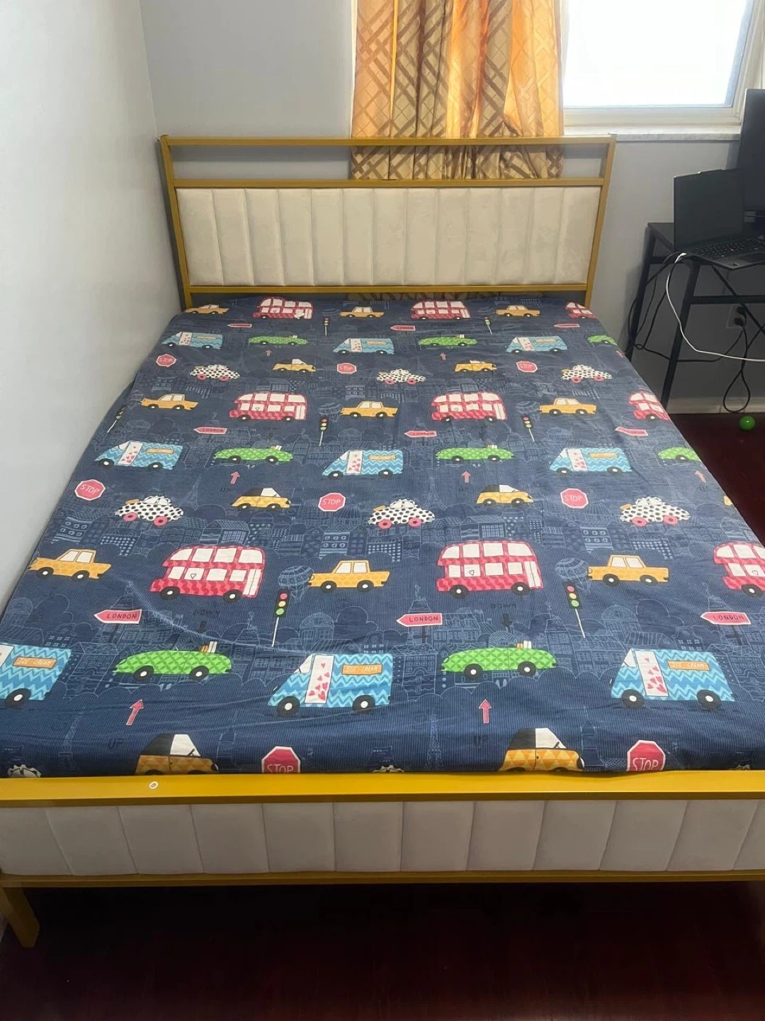 Queen gold metal Bed Frame with mattress and protector