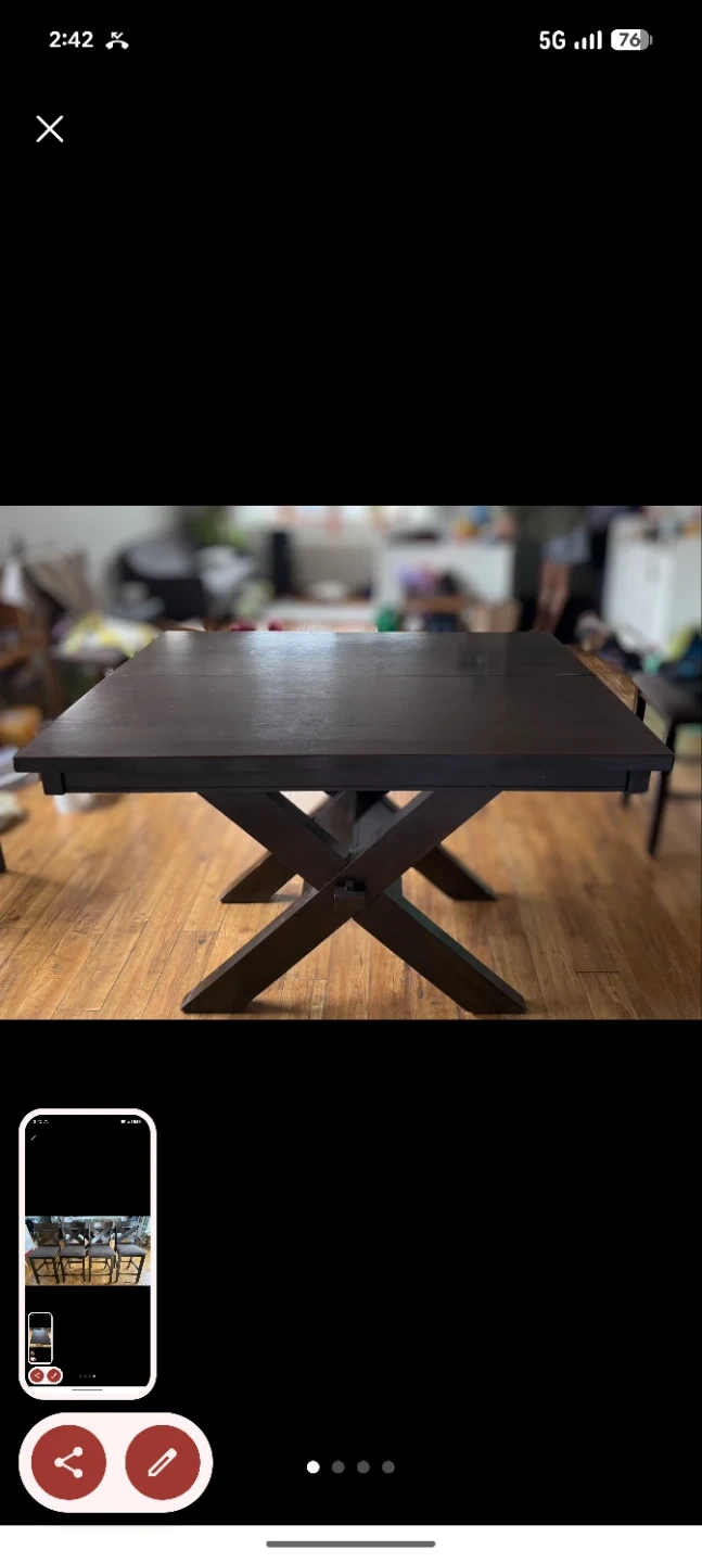Dark Wood Dining Table with X-Base Legs