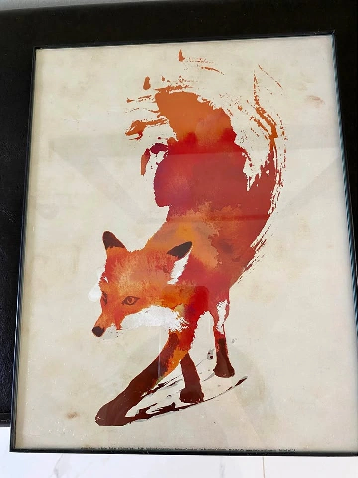 Framed Robert Farkas Fox Print – Warm Mid-Century Style