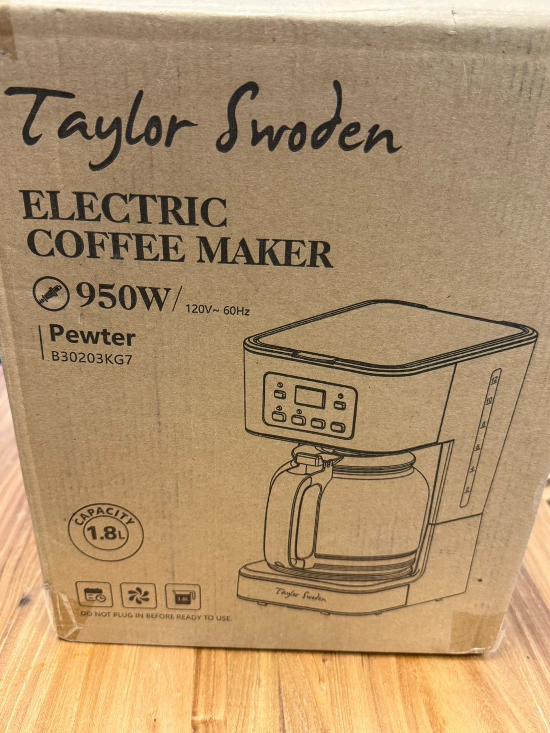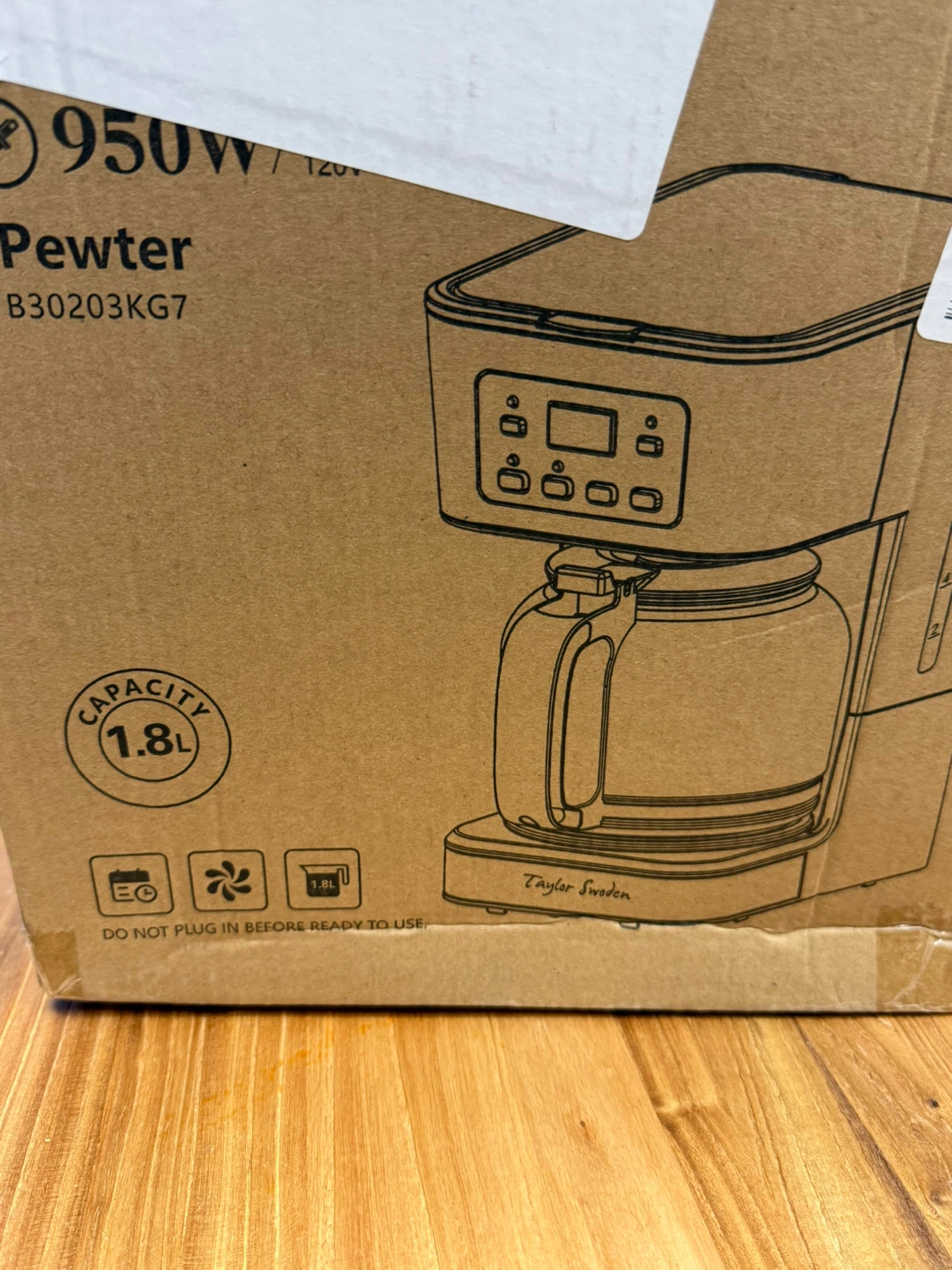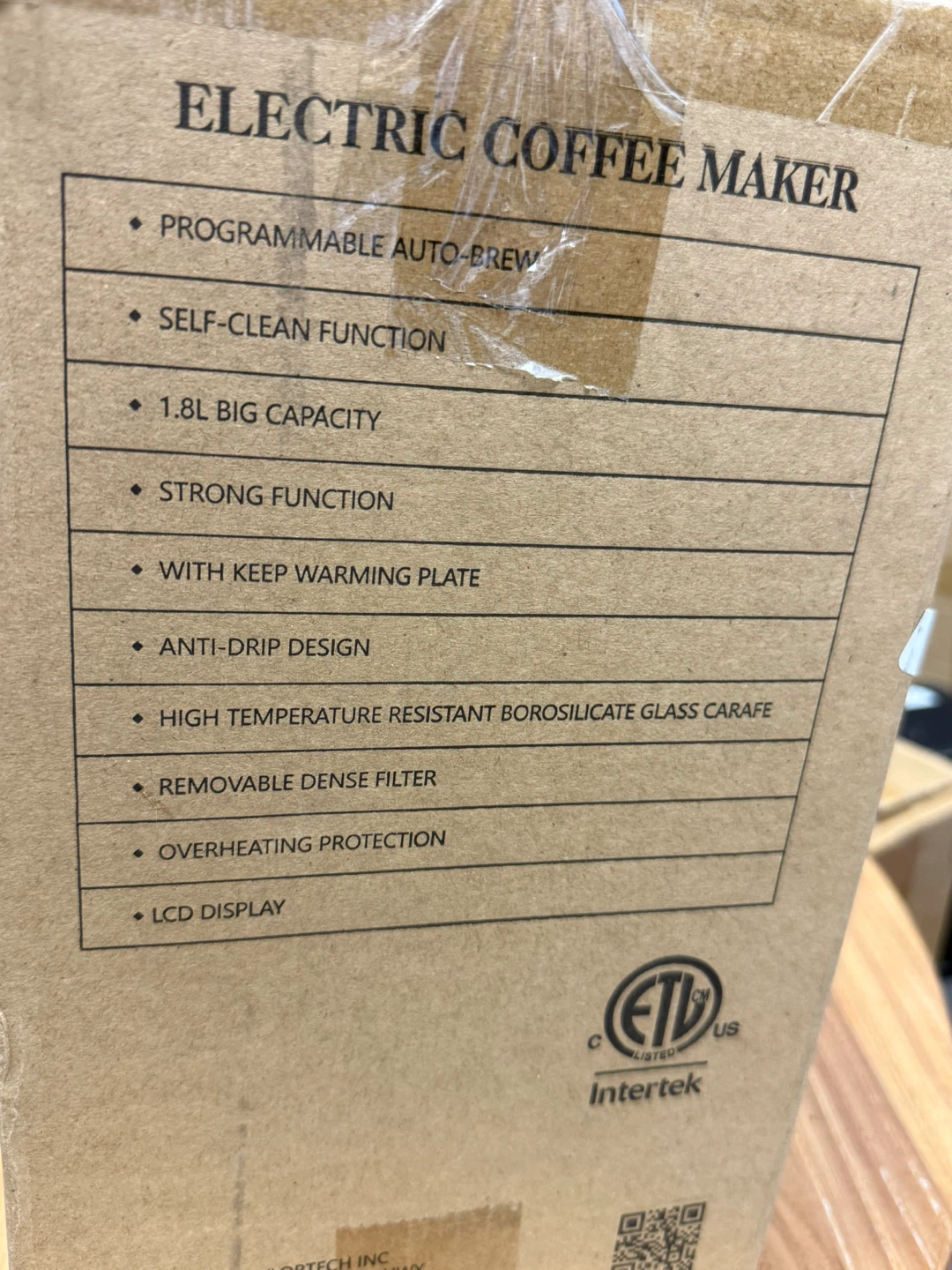 Makes a great cup of coffee with its 950W power and 1.8L capacity! It's programmable for auto-brew and has a self-clean function. Features a warming plate, anti-drip design, and removable filter. This coffee maker is perfect for busy mornings!