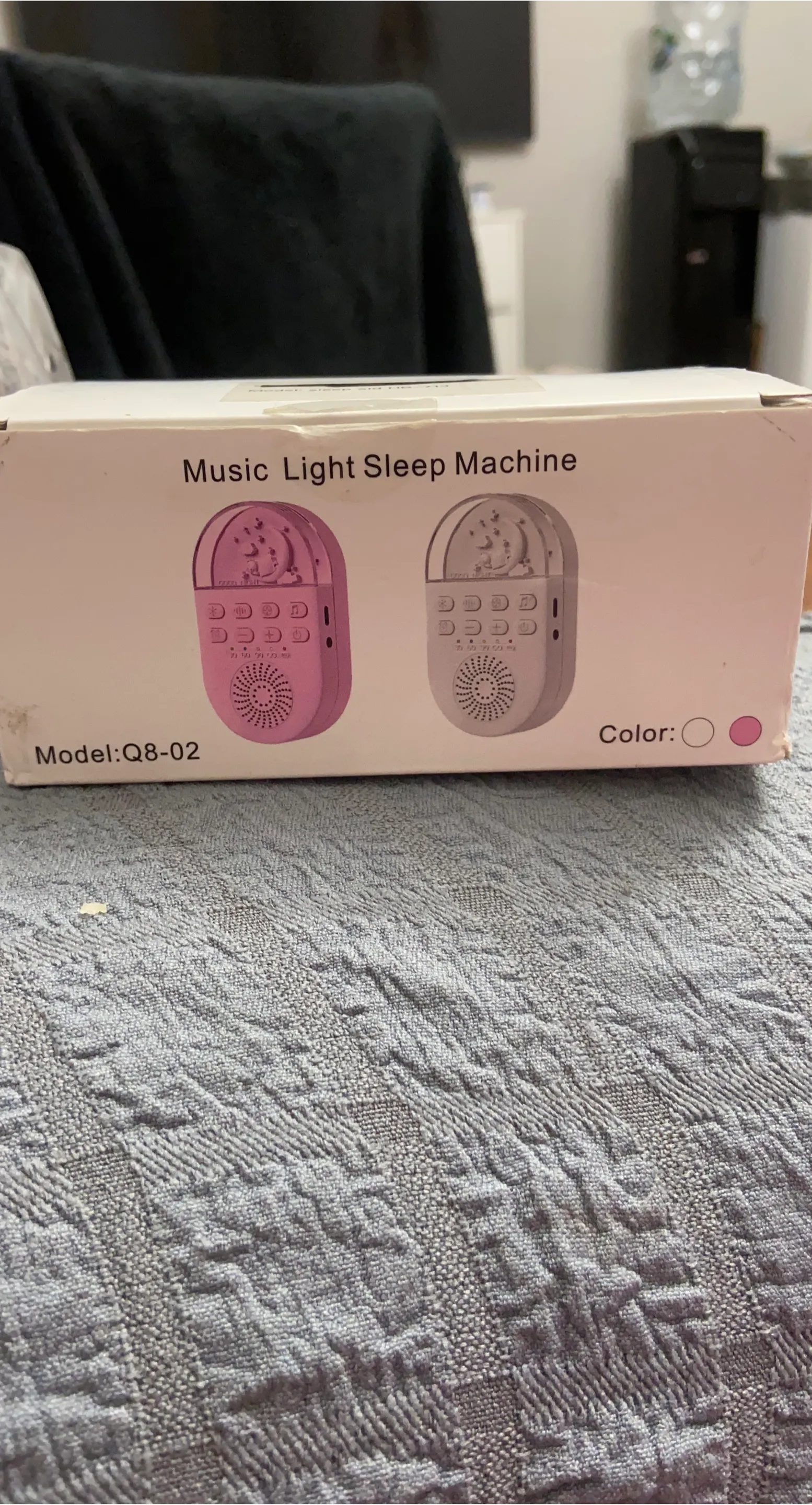 Selling a music light sleep machine, model Q8-02. It comes in its original box. It can be used as a night light and sleep soother for babies and young children