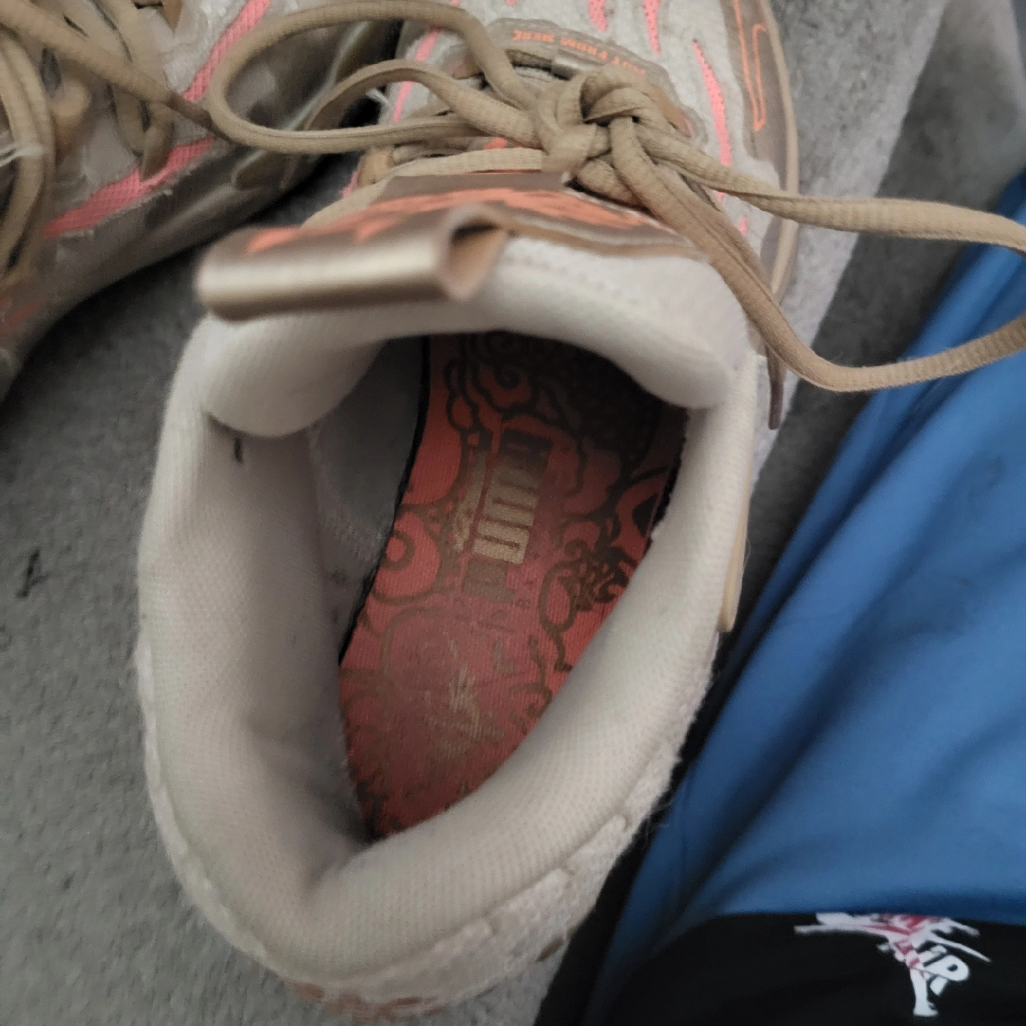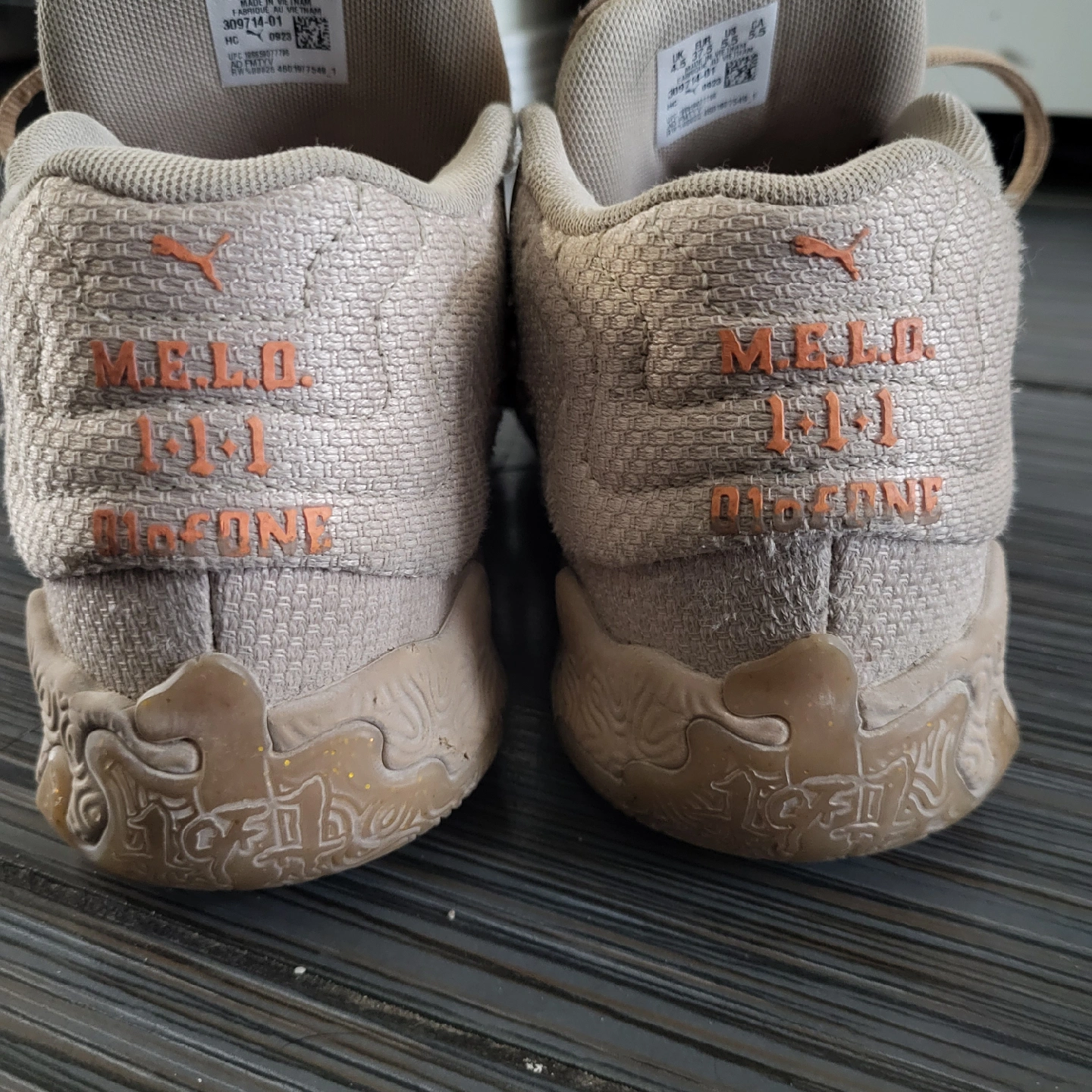 Selling a pair of Puma Melo 1 LaFrance basketball shoes. They show some signs of wear but are still in good condition for playing ball or casual wear
