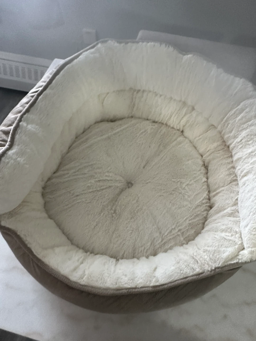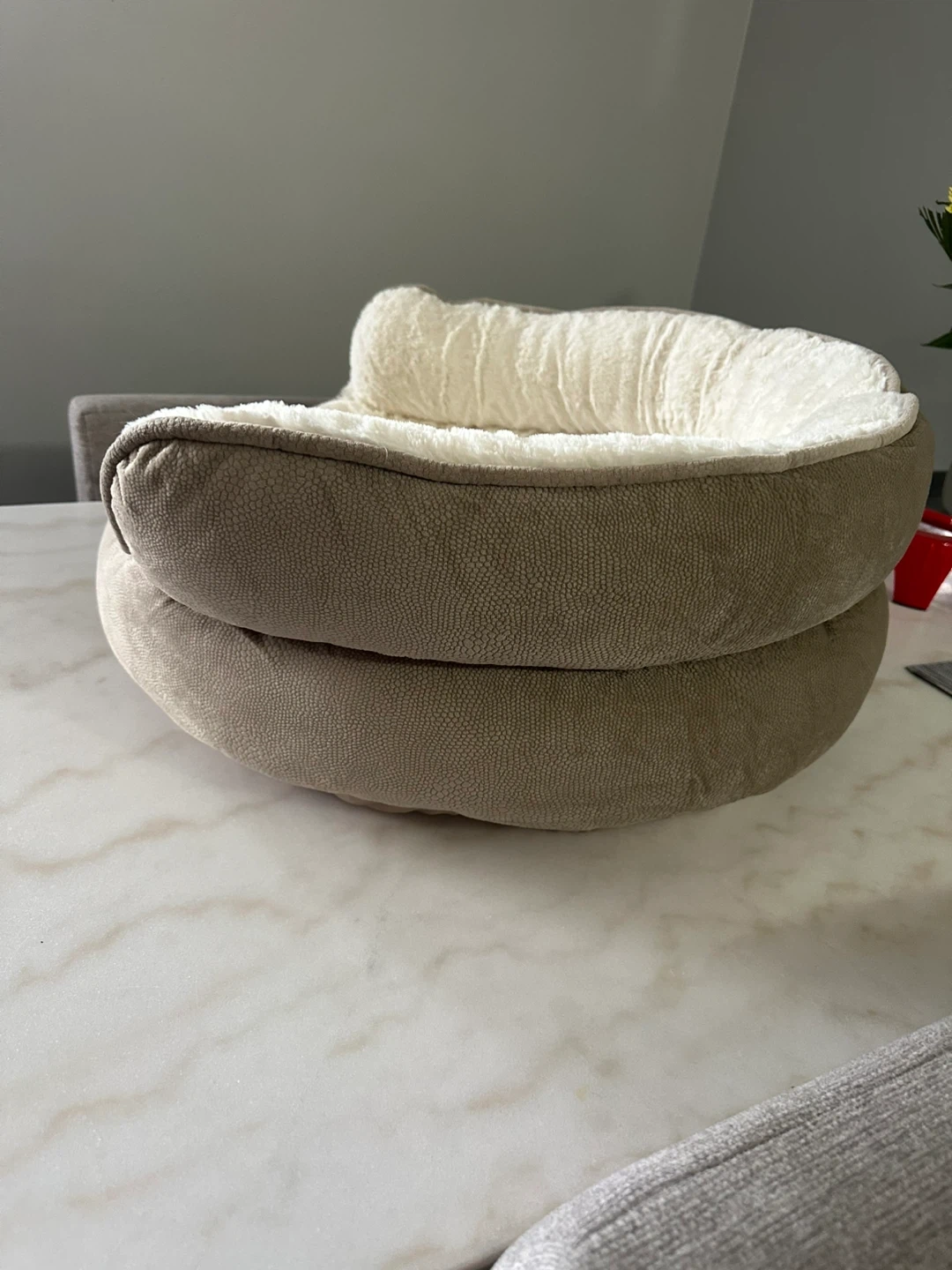 Plush Pet Bed - Taupe & Cream