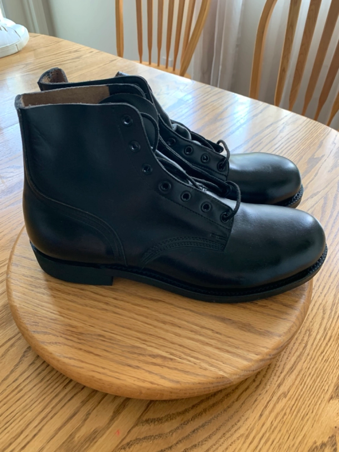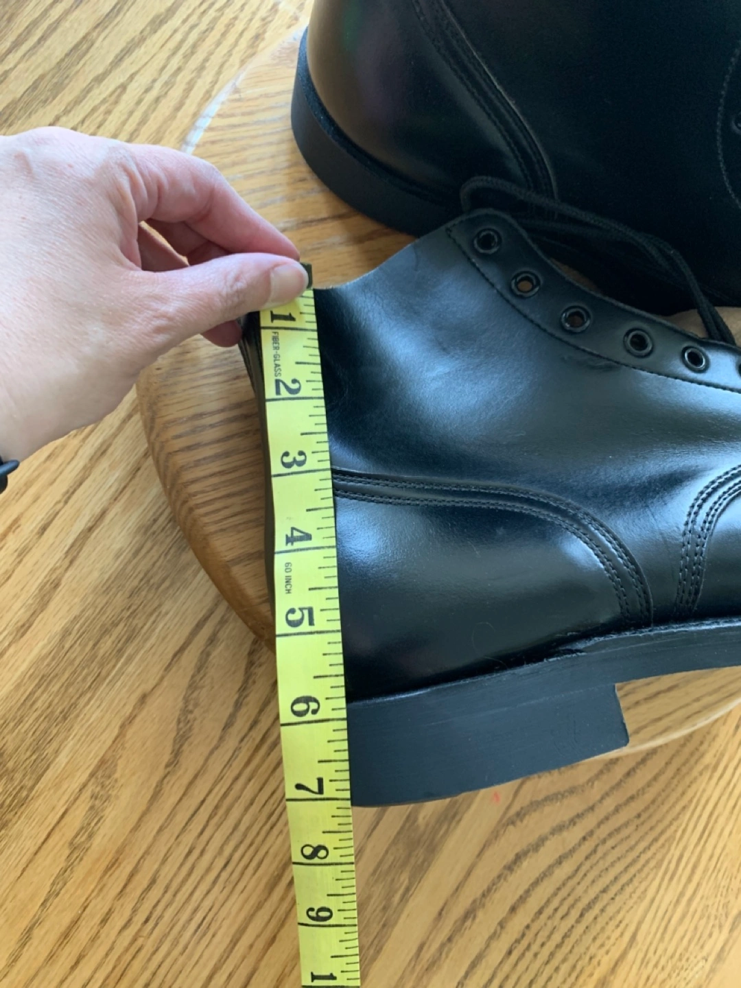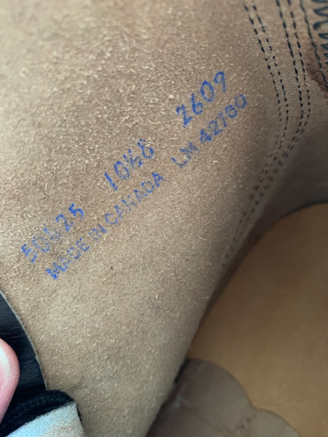 Selling a pair of heavy duty black leather ankle boots. New condition and are a size 10.5. Biltrite brand. Made in Canada. Nitrite-gum Oil and Acid resistant