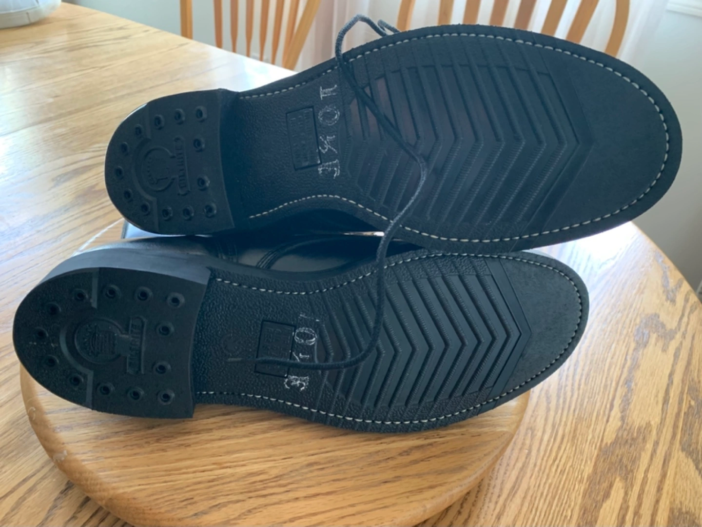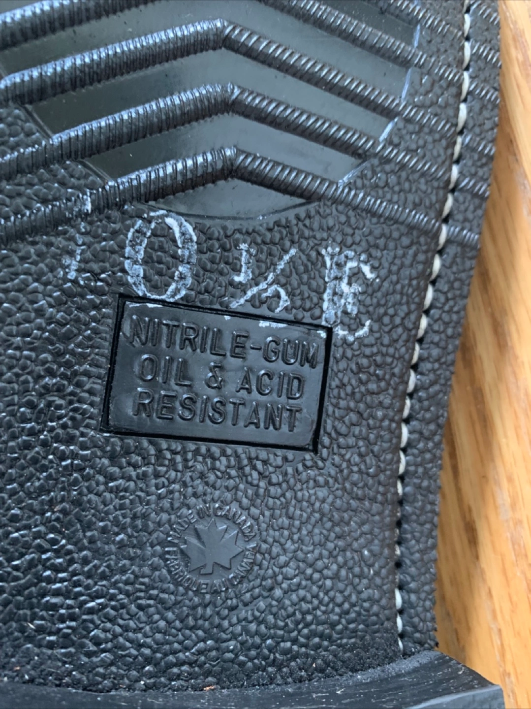 Selling a pair of heavy duty black leather ankle boots. New condition and are a size 10.5. Biltrite brand. Made in Canada. Nitrite-gum Oil and Acid resistant