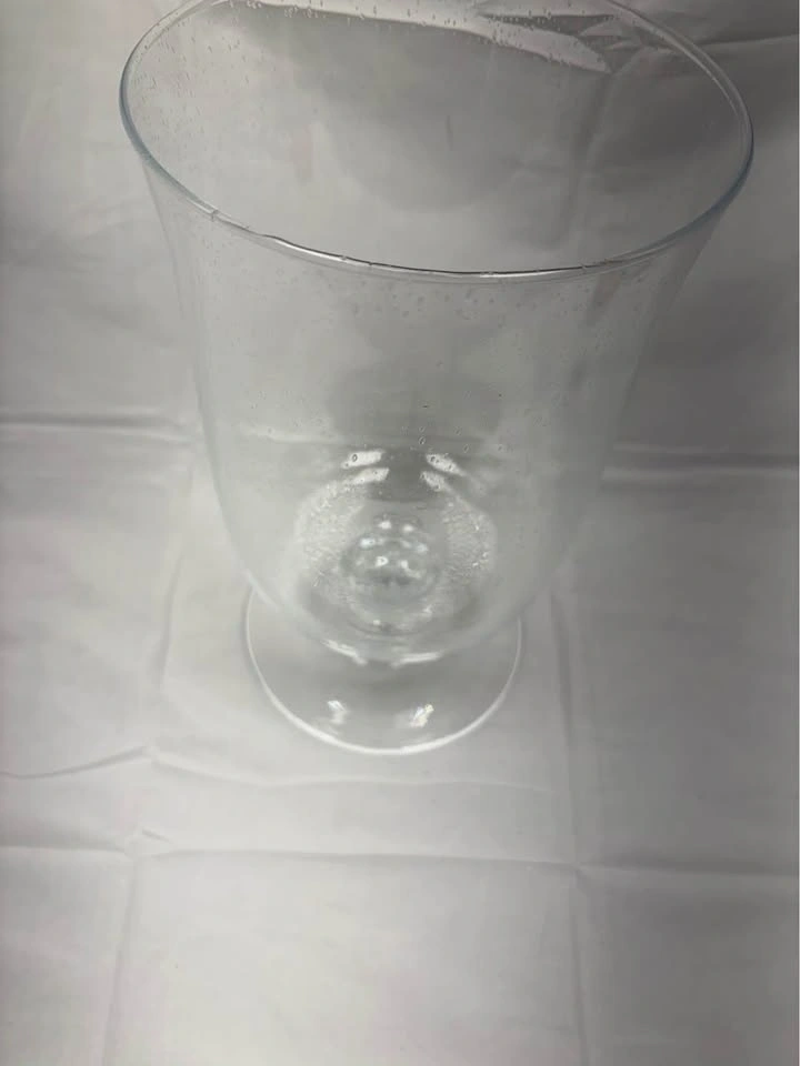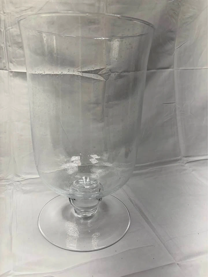 PartyLite Hurricane Candle Holder from the "Coastal Lights" collection. These hand-blown glass pieces are versatile and can be used as decorative candle holders for pillars or tealight trees, or as floral vases. Pick up in Keswick.