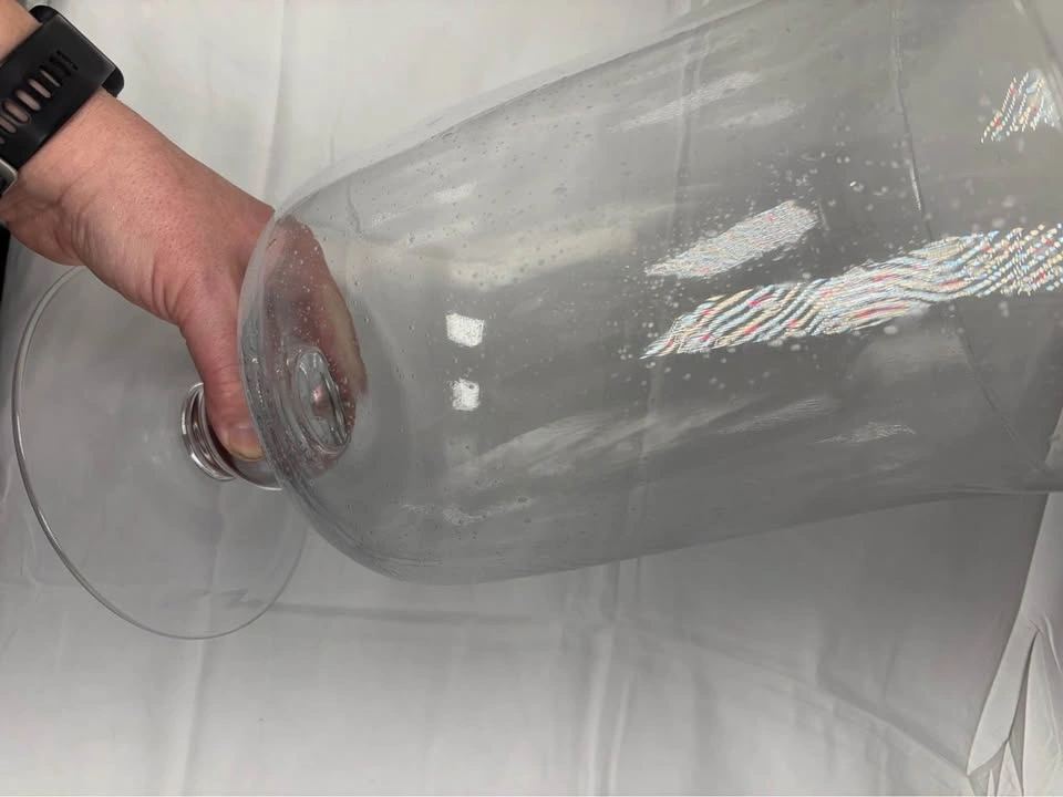 PartyLite Hurricane Candle Holder from the "Coastal Lights" collection. These hand-blown glass pieces are versatile and can be used as decorative candle holders for pillars or tealight trees, or as floral vases. Pick up in Keswick.