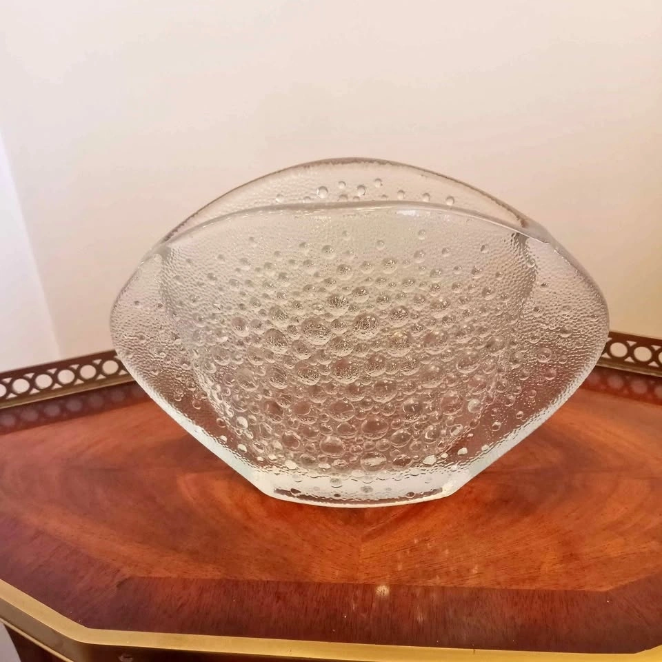 An iconic piece of Polish mid-century modern design. A flattened oval disk shape frosted with 3D bubbles, resembling a star constellation which gives it its name "asteroid".