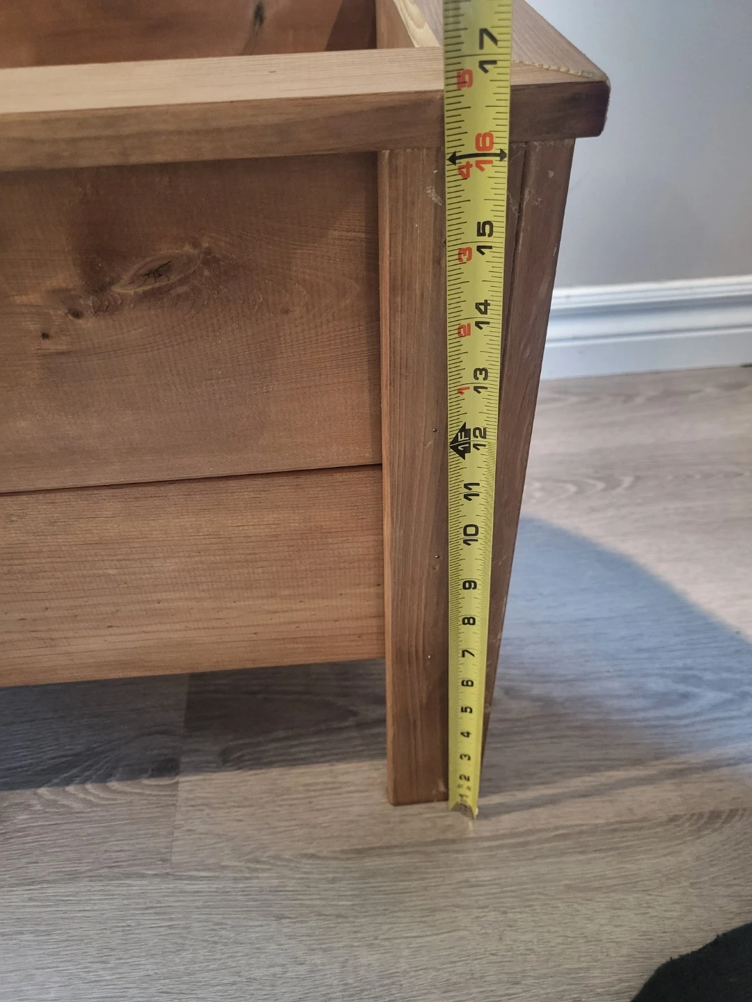 This is a wooden planter box. It's made of wood. This one is pressure treated, but we can do other sizes and wood types. Great for outdoor planting!