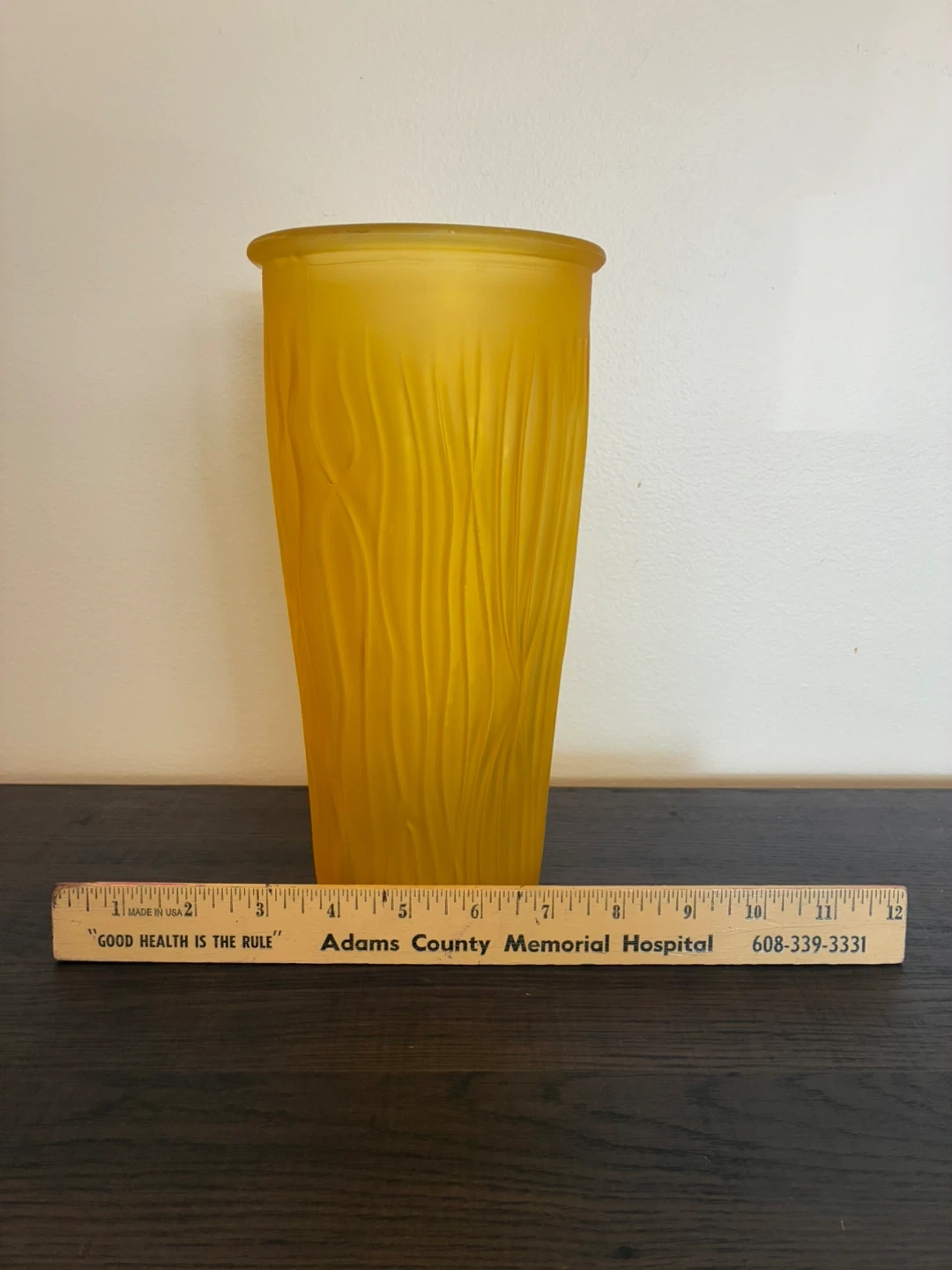 Buy & SellYellow Textured Glass VaseYellow Textured Glass Vase$7This is a yellow glass vase with a textured design. It measures approximately 11 inches tall. Perfect for adding a pop of color to your home decorConditionGoodWHERE TO MEETPorch pickupView MapSELLERverifiedMichelleWorth750 reviews0 chats·0 favorites·19 viewsSEND CHAT TO SELLERHi Michelle! I’m interested in your listing.Hi Michelle! I’m interested in your listing.Get the Karrot app to chatSign In to chat