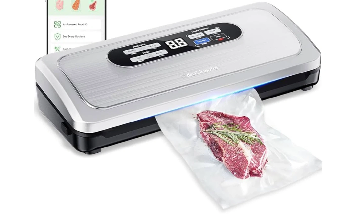 This Beelicious Pro smart vacuum sealer is great for preserving food. It offers multiple modes like Pressure, Food, and Moist. The unit displays '8.8' and has functions for Vacuum, Seal Only, and Pulse.