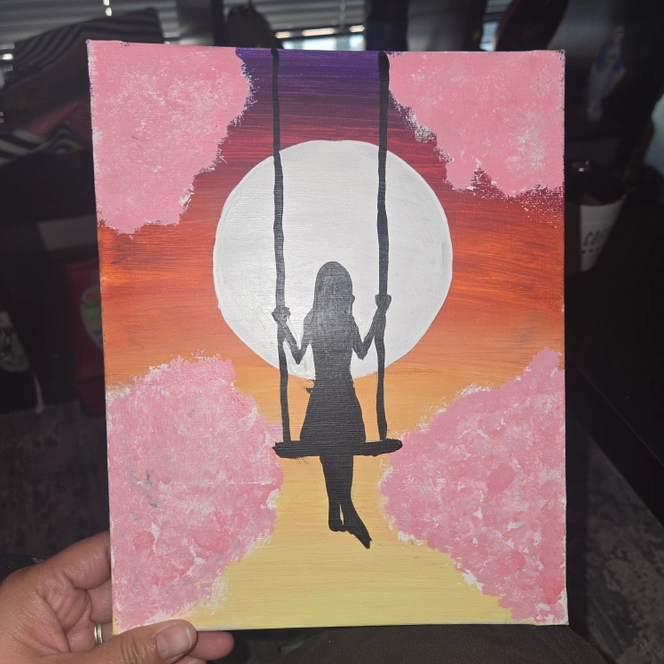 Hand-Painted Acrylic Painting - Silhouette on a Swing