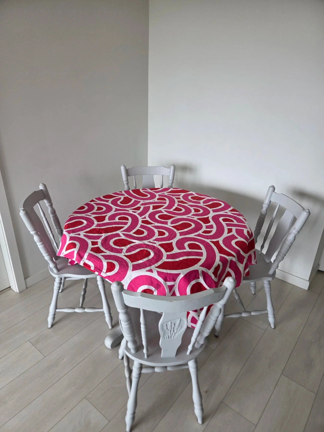 The set shows minor signs of regular use (a few scratches), but nothing that takes away from its charm. Or even perfect for using that beautiful table cloth that you haven't use in a while. It’s also a great opportunity if you enjoy DIY or refinishing projects—perfect for a fun summer refresh!