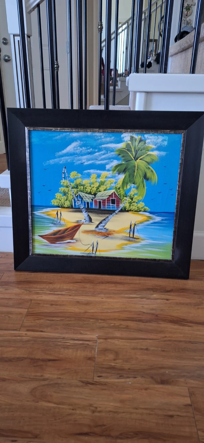 Framed Tropical Island Painting