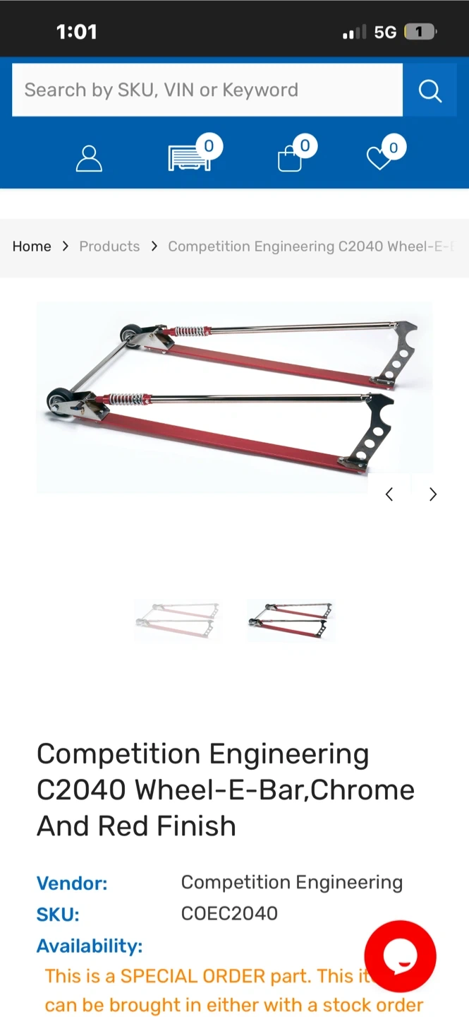 Selling a Competition Engineering C2040 Wheel-E-Bar with Chrome and Red Finish. Great for getting your car ready for the track!