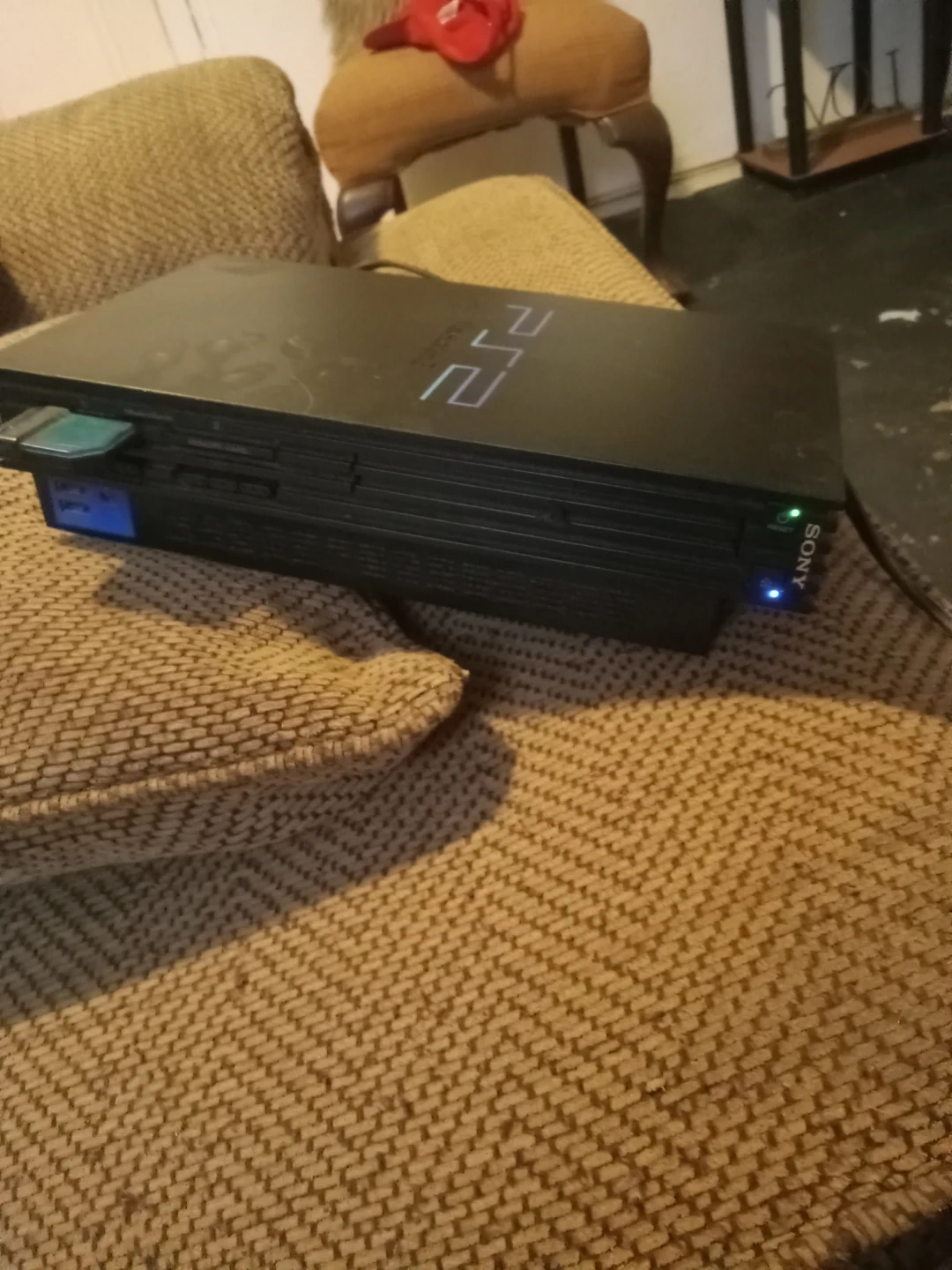This is a Sony PlayStation 2 gaming console. It comes with one controller, a memory card, and all necessary cables. Get ready for some classic gaming fun!