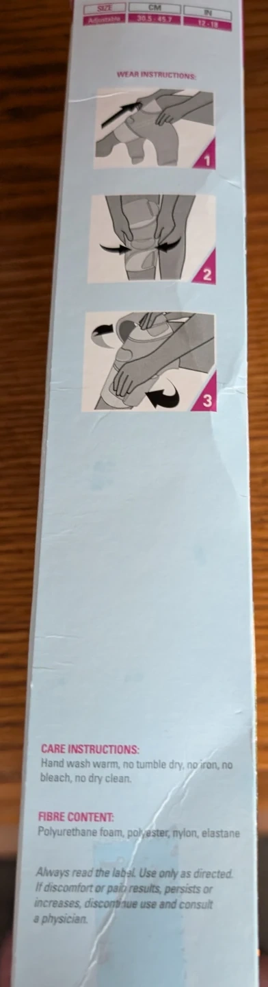 This 3M knee brace offers patella support with a gel pad for added comfort. It features dual spiral side stabilizers for medial and lateral support. Contoured design fits a woman's leg.