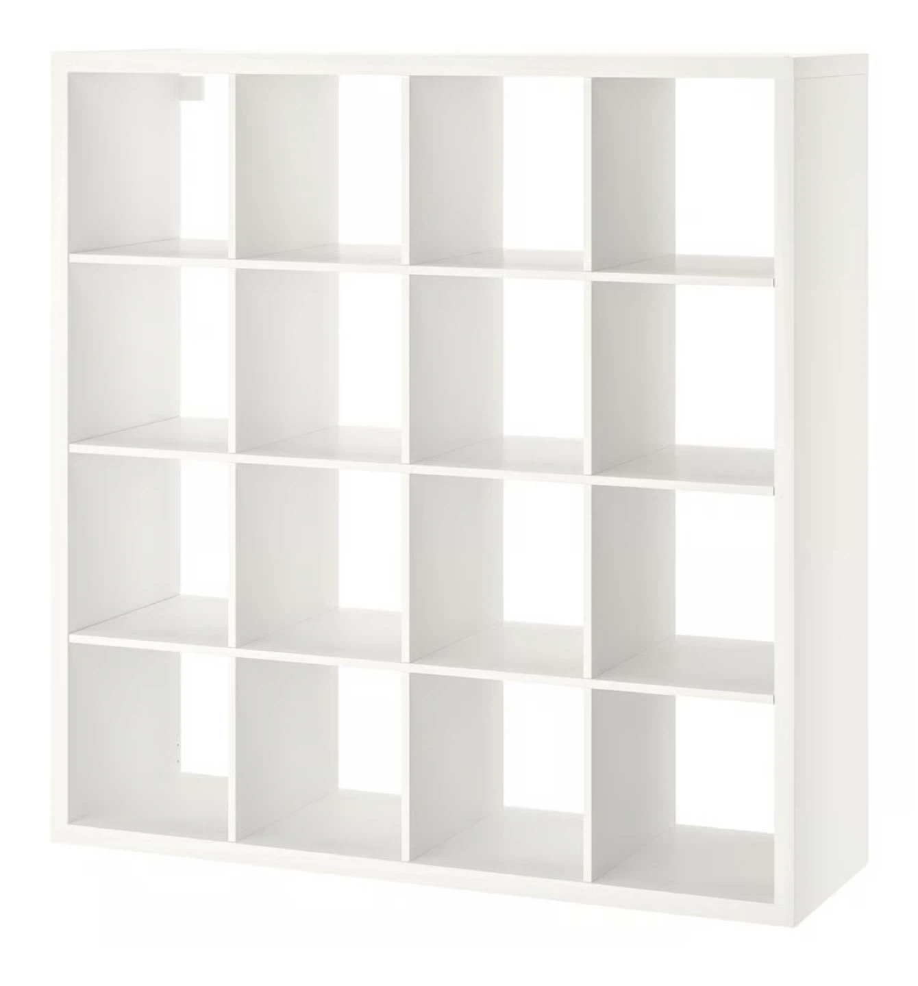 Selling a white IKEA Kallax shelf unit. It's in great shape and ready for a new home! The dimensions are 147 cm (57 7/8") x 146.5 cm (57 5/8") x 39 cm (15 3/8"). Each compartment measures 33.5 cm (13 1/4") x 33.5 cm (13 1/4")