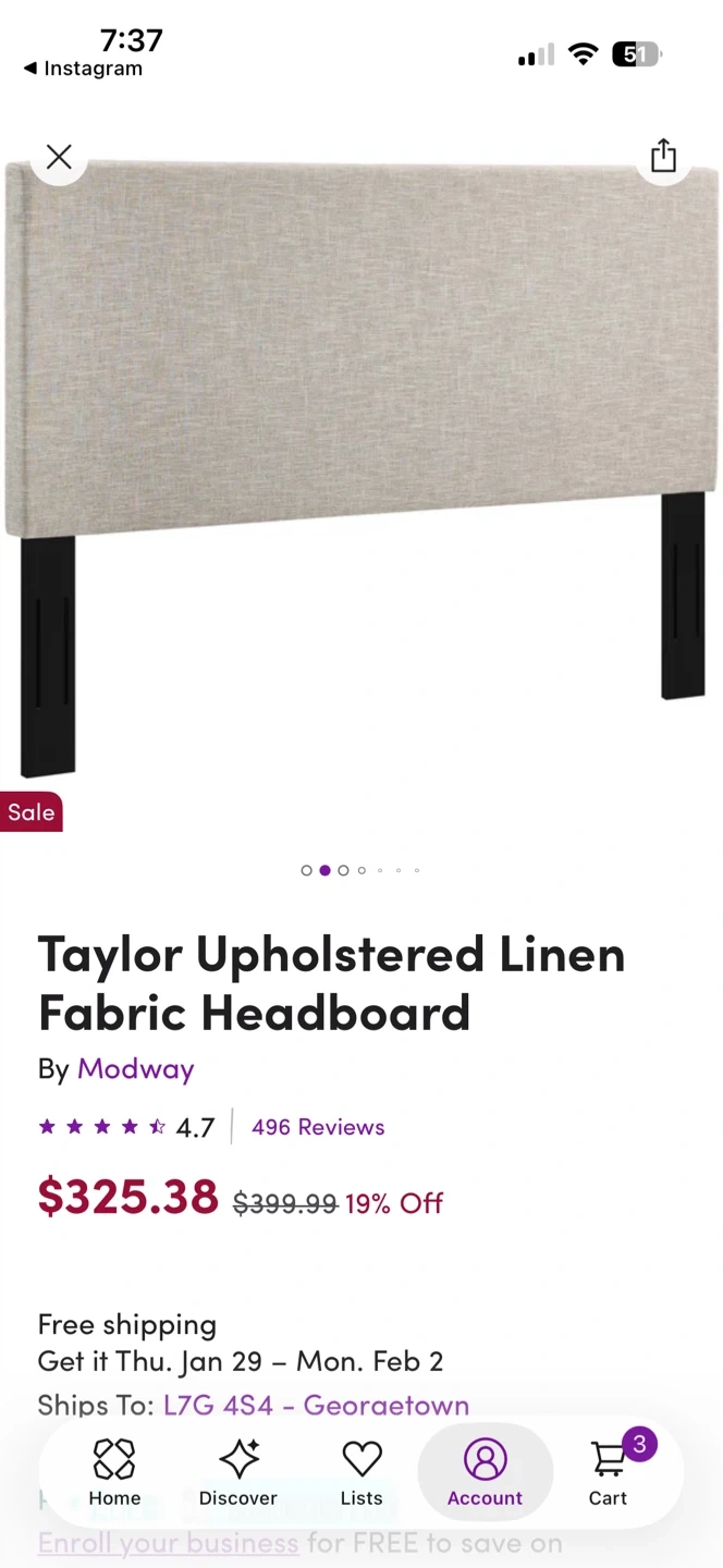 This is the Modway Taylor Upholstered Linen Fabric Headboard. It features a linen fabric upholstery and black legs. This headboard would be a nice addition to any bedroom! Does not match our room.