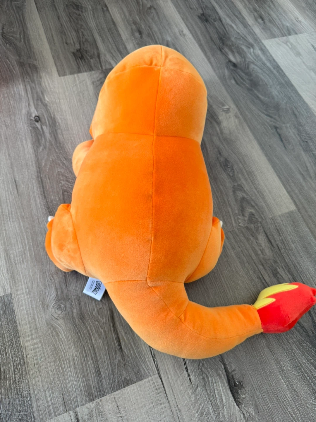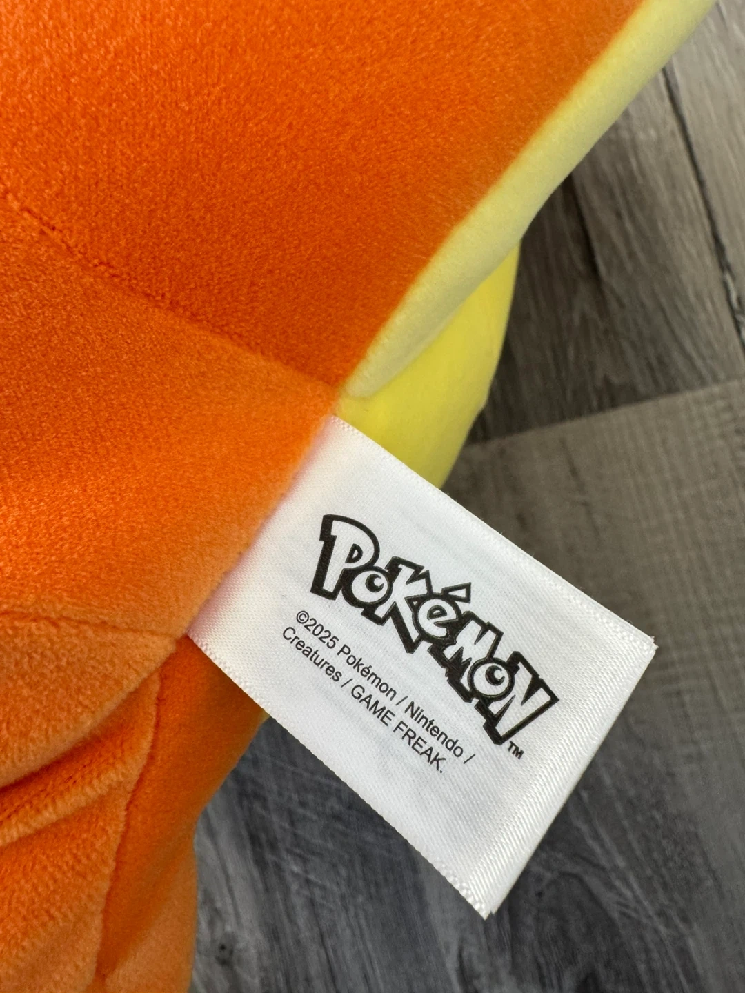 This is a soft orange Charmander plush toy. It's made by Pokémon and dated 2025. This plush would be a fun buddy for any Pokémon fan!