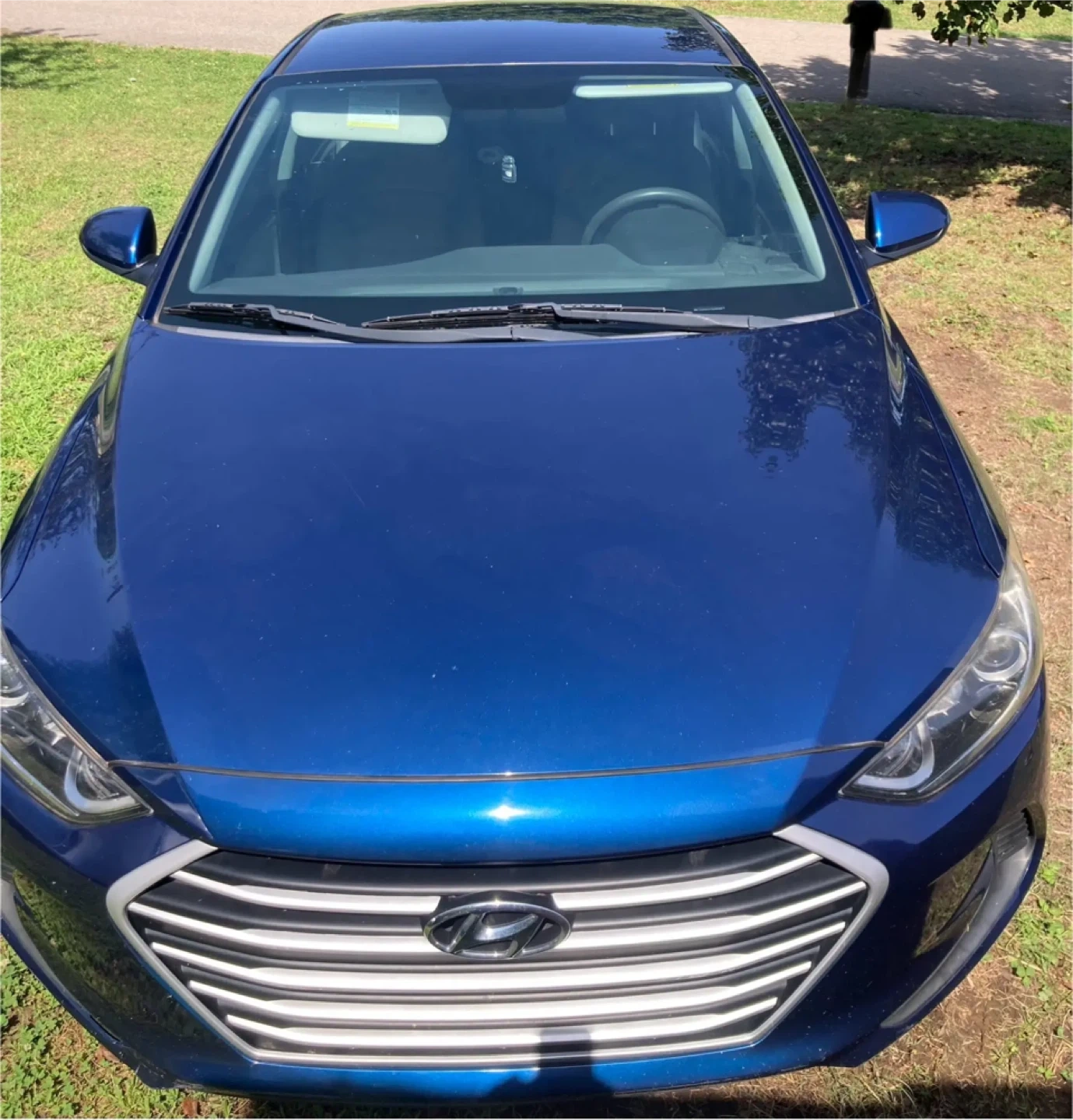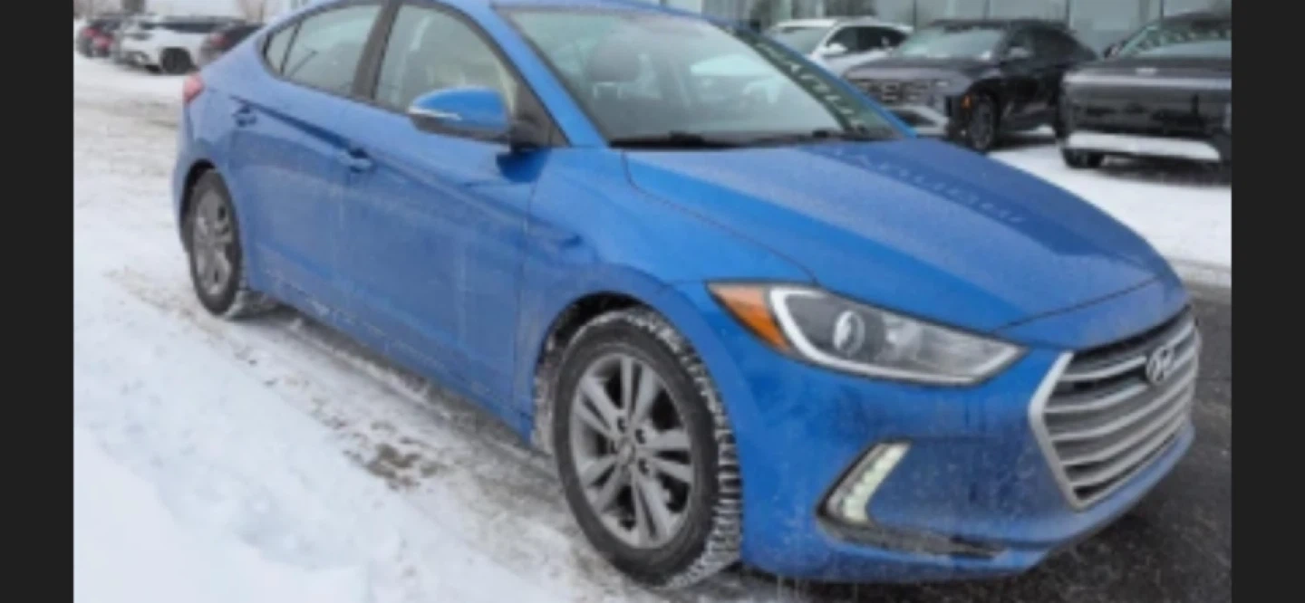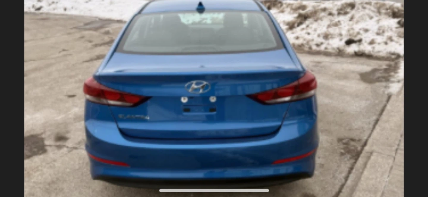 This is a blue Hyundai Elantra sedan. It features a clean interior with comfortable seating. Great for daily commutes!