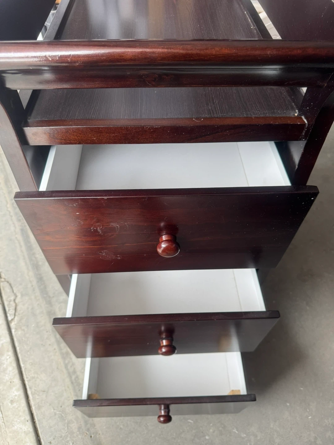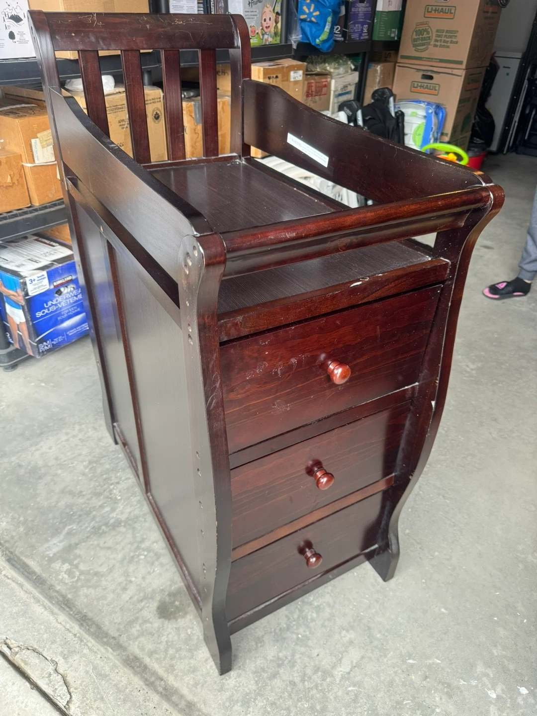 Buy & SellWooden Changing Table with DrawersWooden Changing Table with Drawers$40This is a dark wood changing table. It's got three drawers for storage. The top has safety rails and a changing surface. Price firm and cash onlyConditionLike newAge0-2 yearsWHERE TO MEETCheck LocationView MapSELLERverifiedEmmaDalhousie1457 reviews0 chats·0 favorites·53 viewsSEND CHAT TO SELLERHi Emma! I’m interested in your listing.Hi Emma! I’m interested in your listing.Get the Karrot app to chatSign In to chat