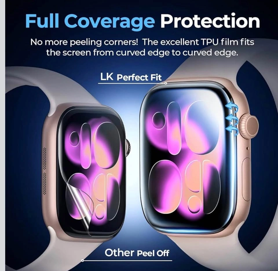 Protect your Apple Watch from scratches and cracks with high-clarity flexible TPU protectors. These wrap around curved edges for full coverage.