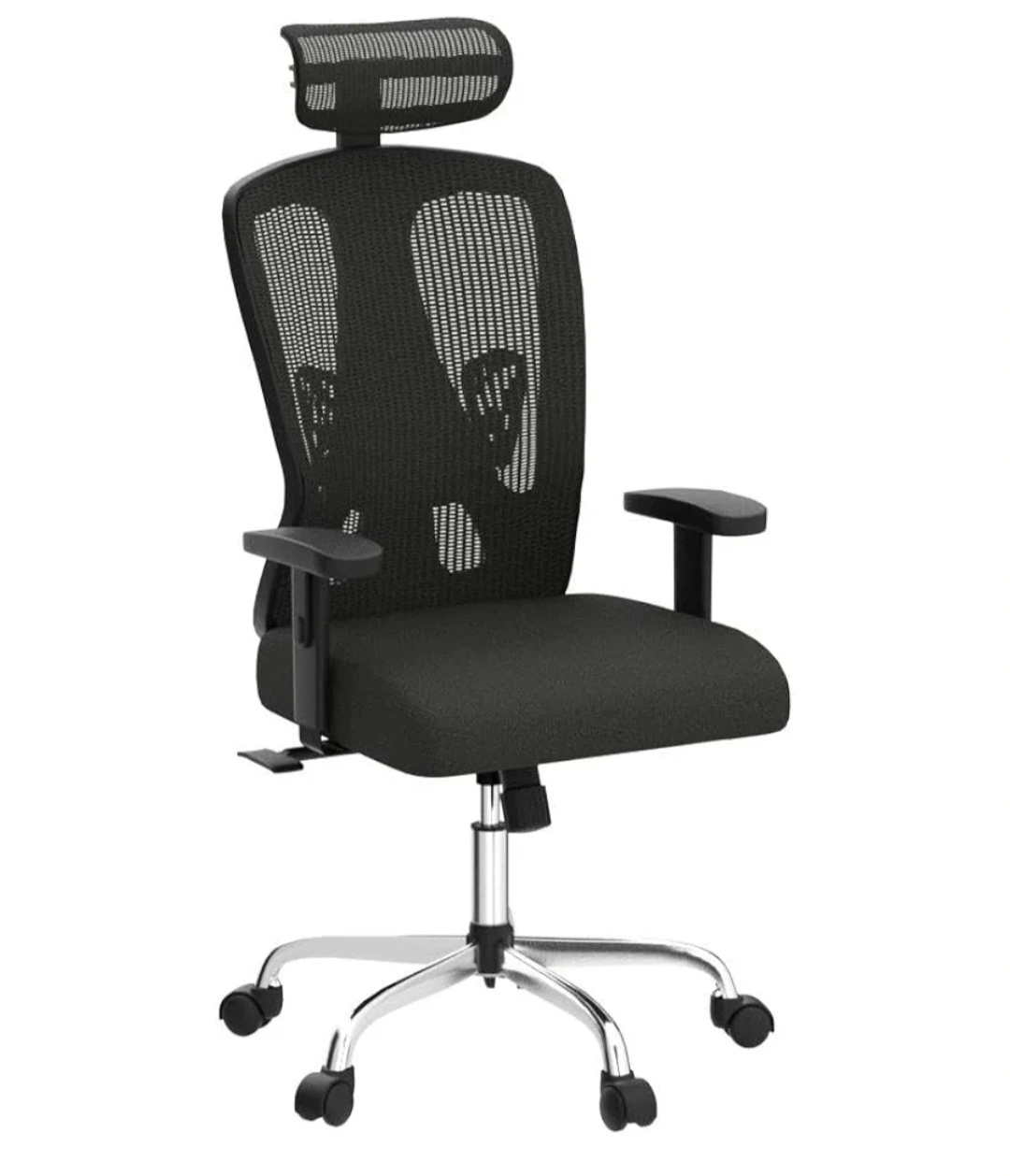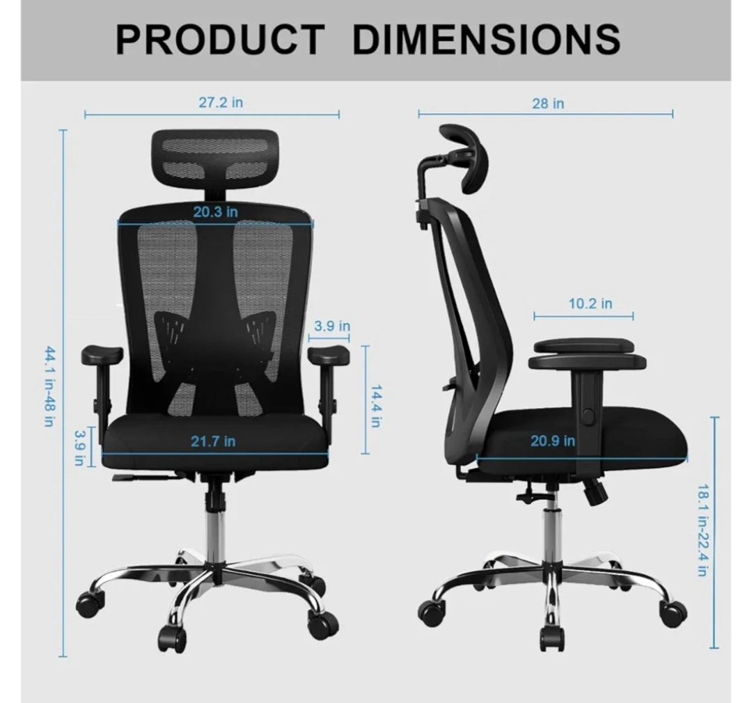 * Ergonomic office chair with adjustable headrest, lumbar support, and armrests.