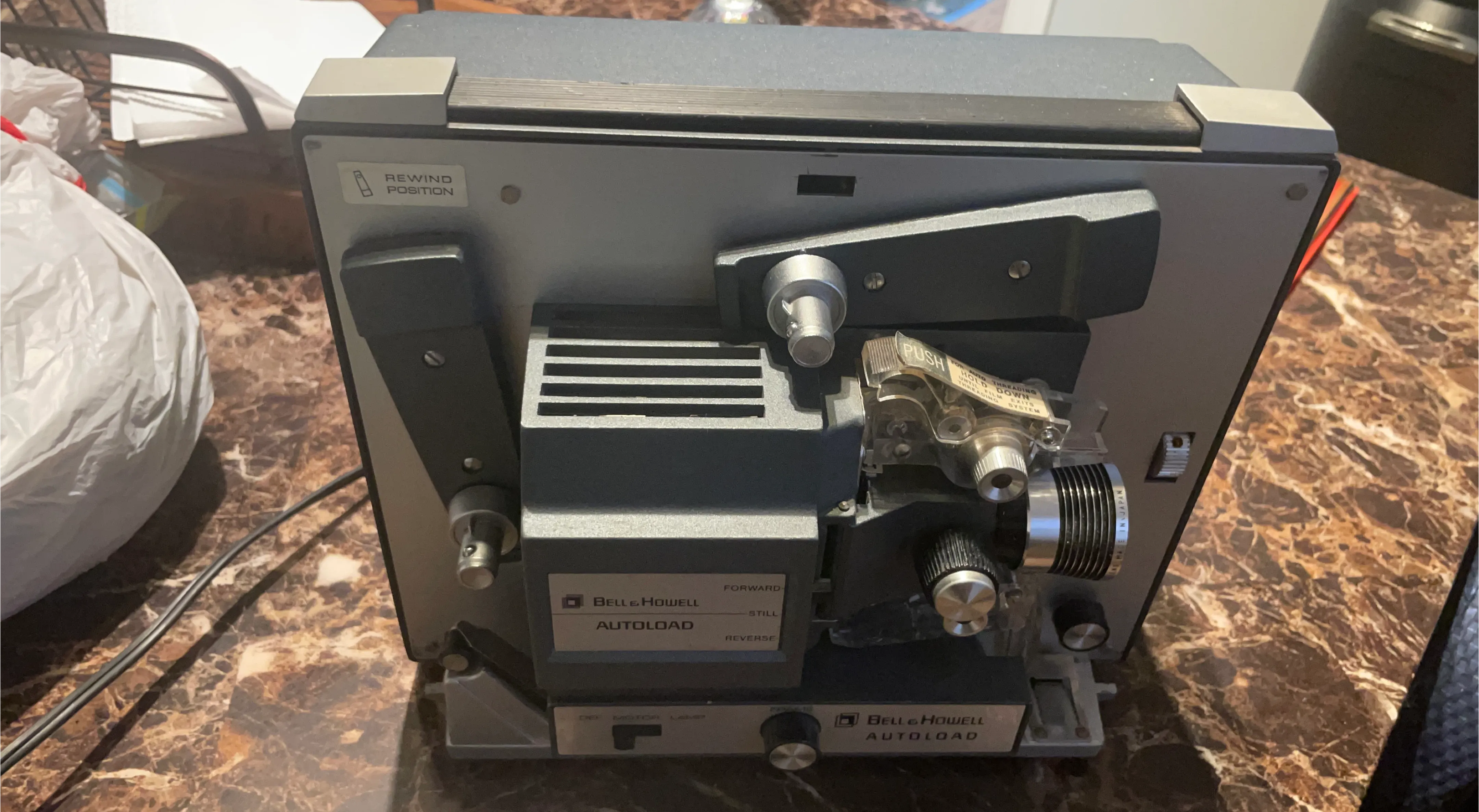 This is a Bell & Howell Autoload film projector. It's an autoloader model. Made in USA.