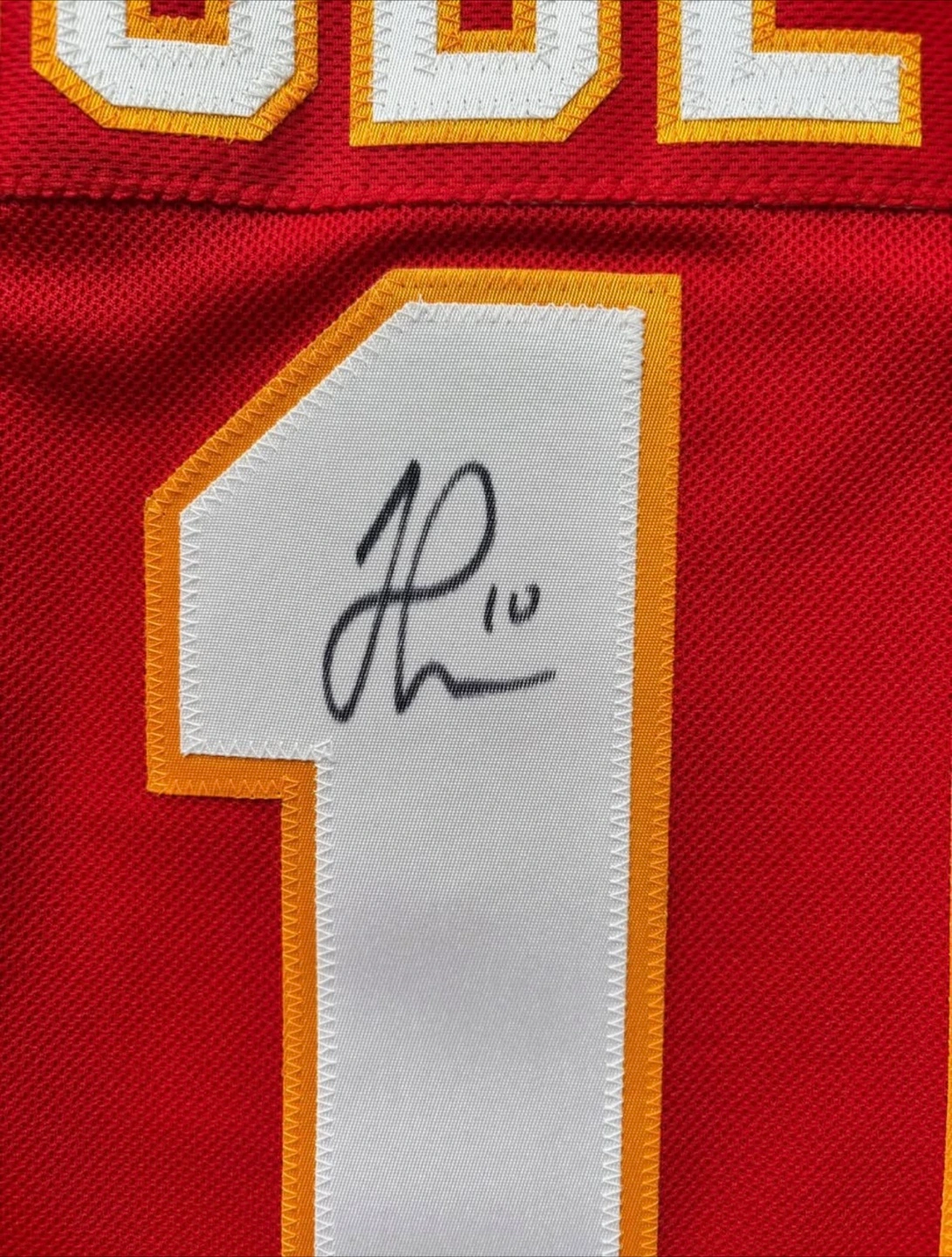 Jonathan Huberdeau Autographed Flames Jersey-size 52-Brand New