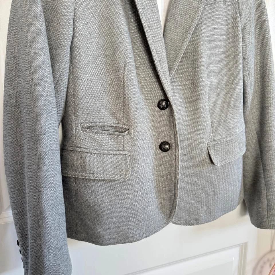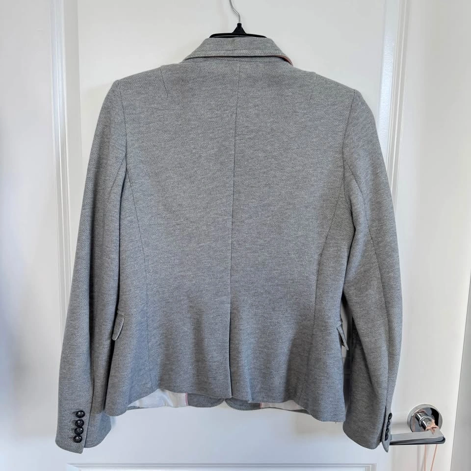 This Banana Republic blazer in a sophisticated gray hue combines a tailored silhouette with a soft, comfortable construction. Ideal for both office and casual settings, it features structured shoulders and a modern slim-fit design. No stains, no rips. Quite thick material, great for Spring and Fall weather. Pick up or drop off in Richmond only!