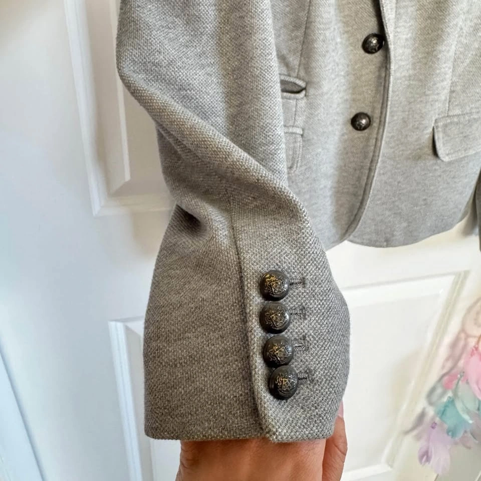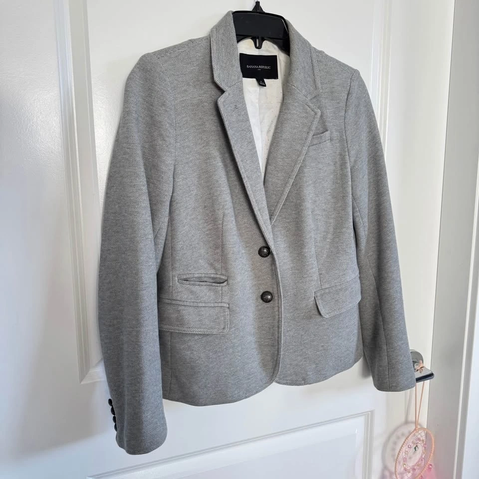 This Banana Republic blazer in a sophisticated gray hue combines a tailored silhouette with a soft, comfortable construction. Ideal for both office and casual settings, it features structured shoulders and a modern slim-fit design. No stains, no rips. Quite thick material, great for Spring and Fall weather. Pick up or drop off in Richmond only!