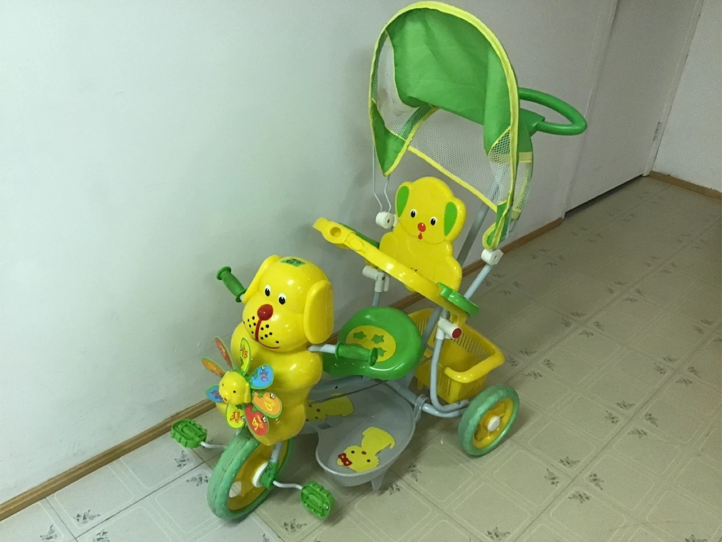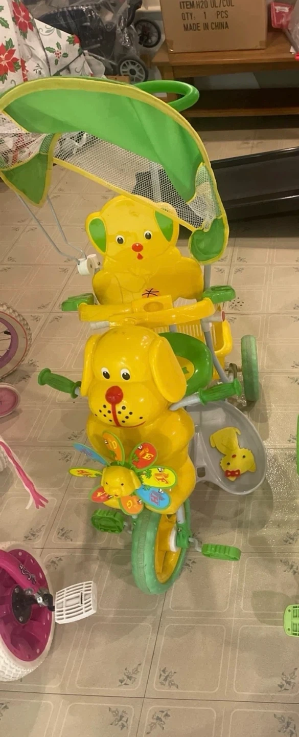 Selling a kids' tricycle with a cute yellow dog theme. perfect for little ones learning to ride and explore. Great for hours of outdoor fun!