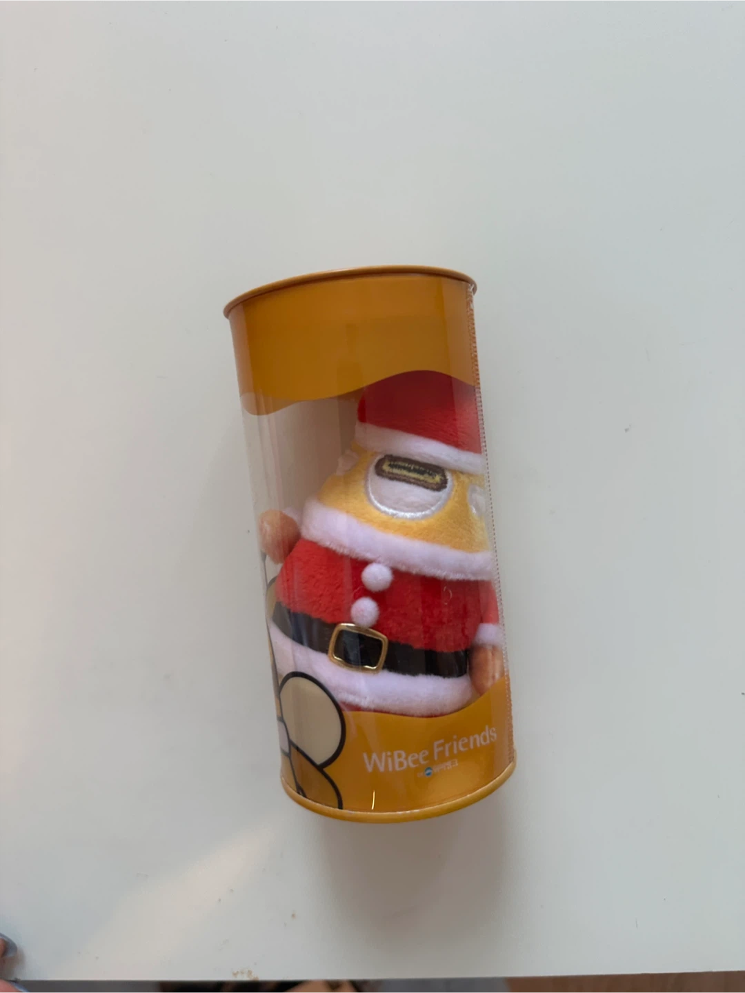 Set of WiBee Friends and Bomong plush toys dressed in festive Christmas outfits. These cute collectible characters come in individual cylindrical packaging. Perfect for adding some holiday cheer to your desk or bag!