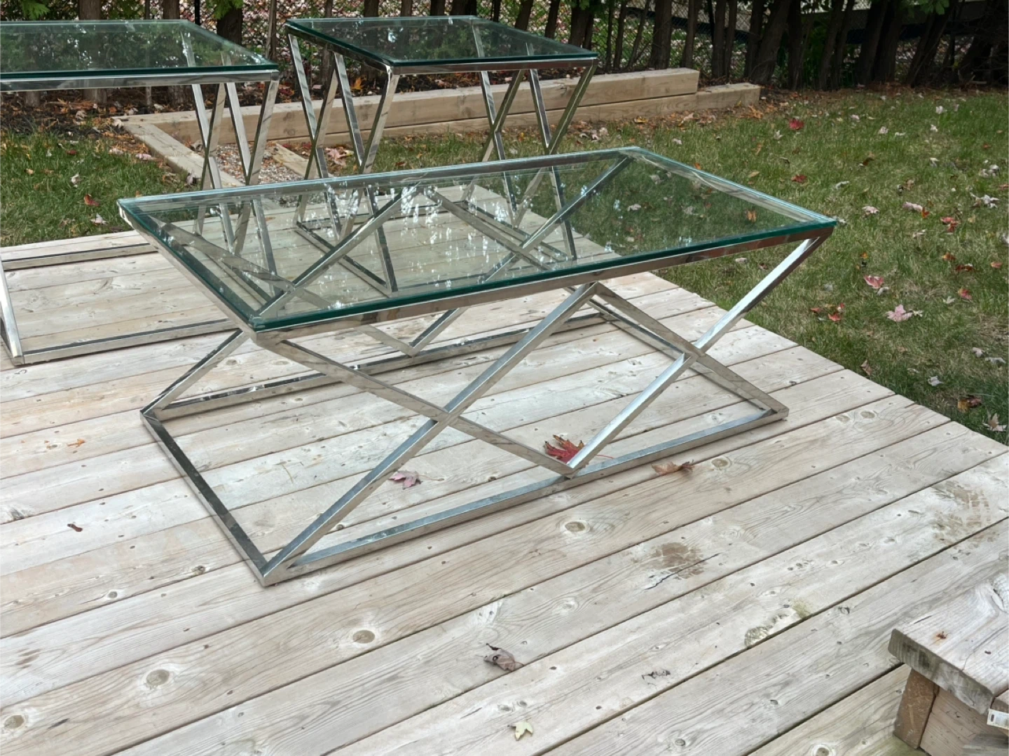 Selling a Cali Coffee Table with two side tables (total of 3 tables). Removable glass tops and a chrome metal frame. In great condition and ready for a new home!