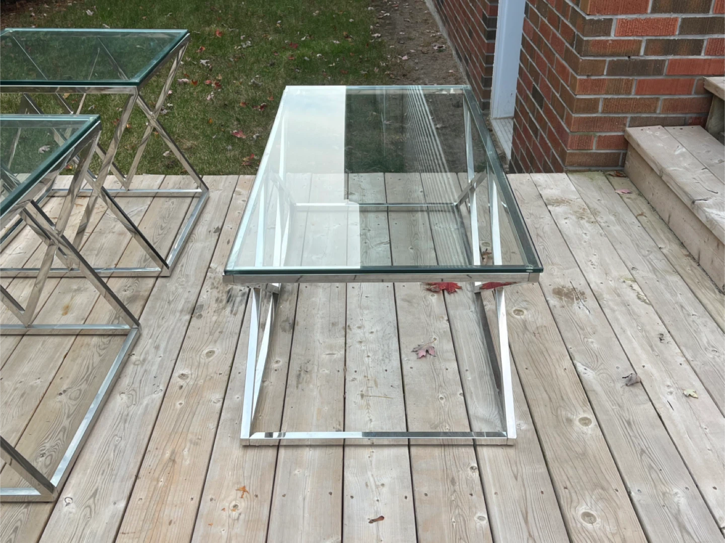 Selling a Cali Coffee Table with two side tables (total of 3 tables). Removable glass tops and a chrome metal frame. In great condition and ready for a new home!
