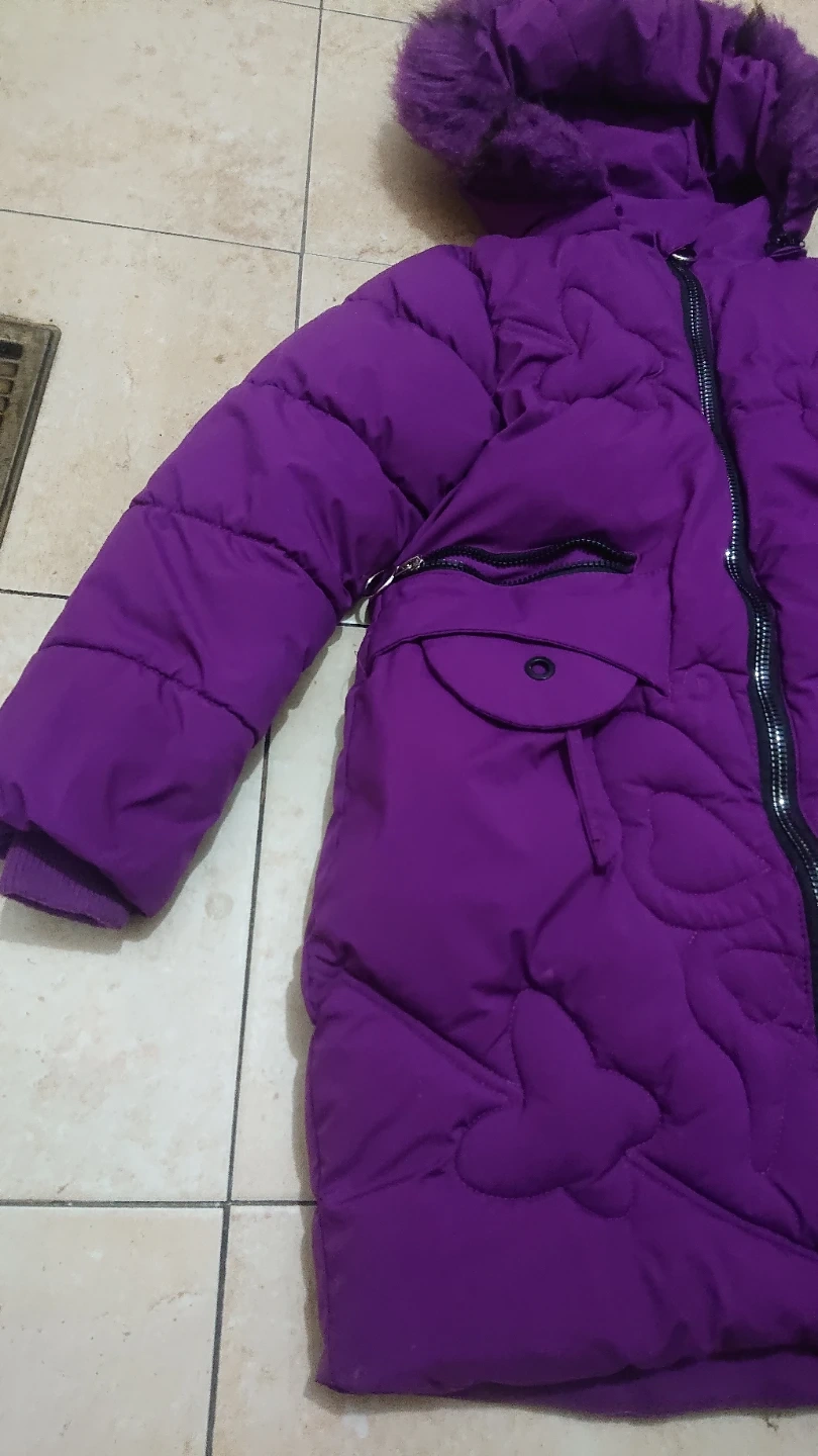 This purple puffer jacket is super warm and cozy. It features a detachable faux fur hood and multiple pockets. Perfect for keeping you toasty on chilly days!