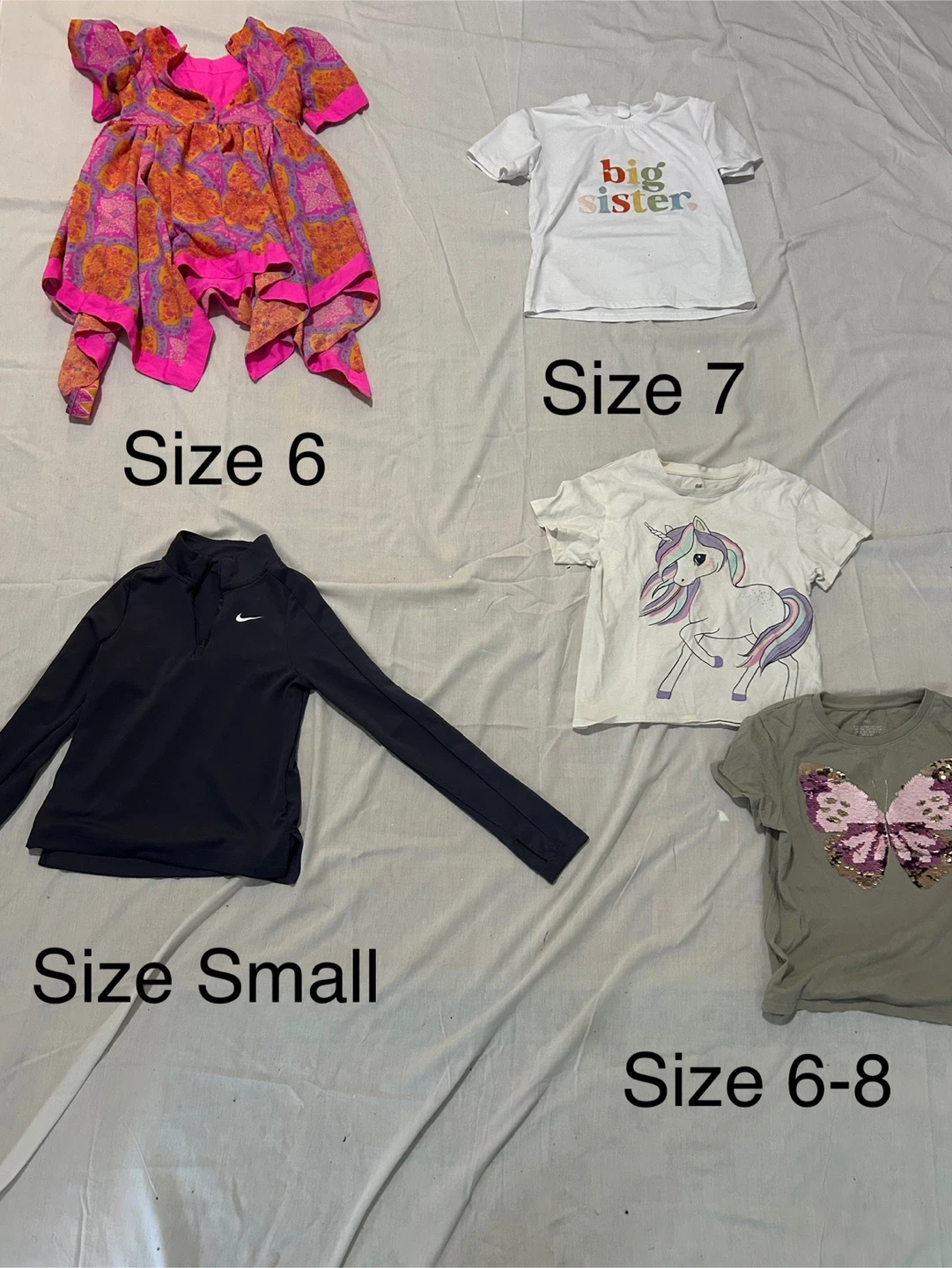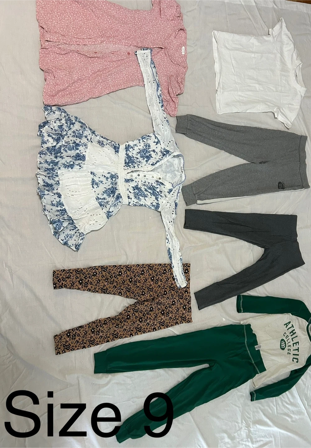 Girls’ clothing in excellent condition, some pieces new. Sizes 6 to 11. All from a smoke‑free, pet‑free home. Selling in bundles only, or individually. Prices listed below.