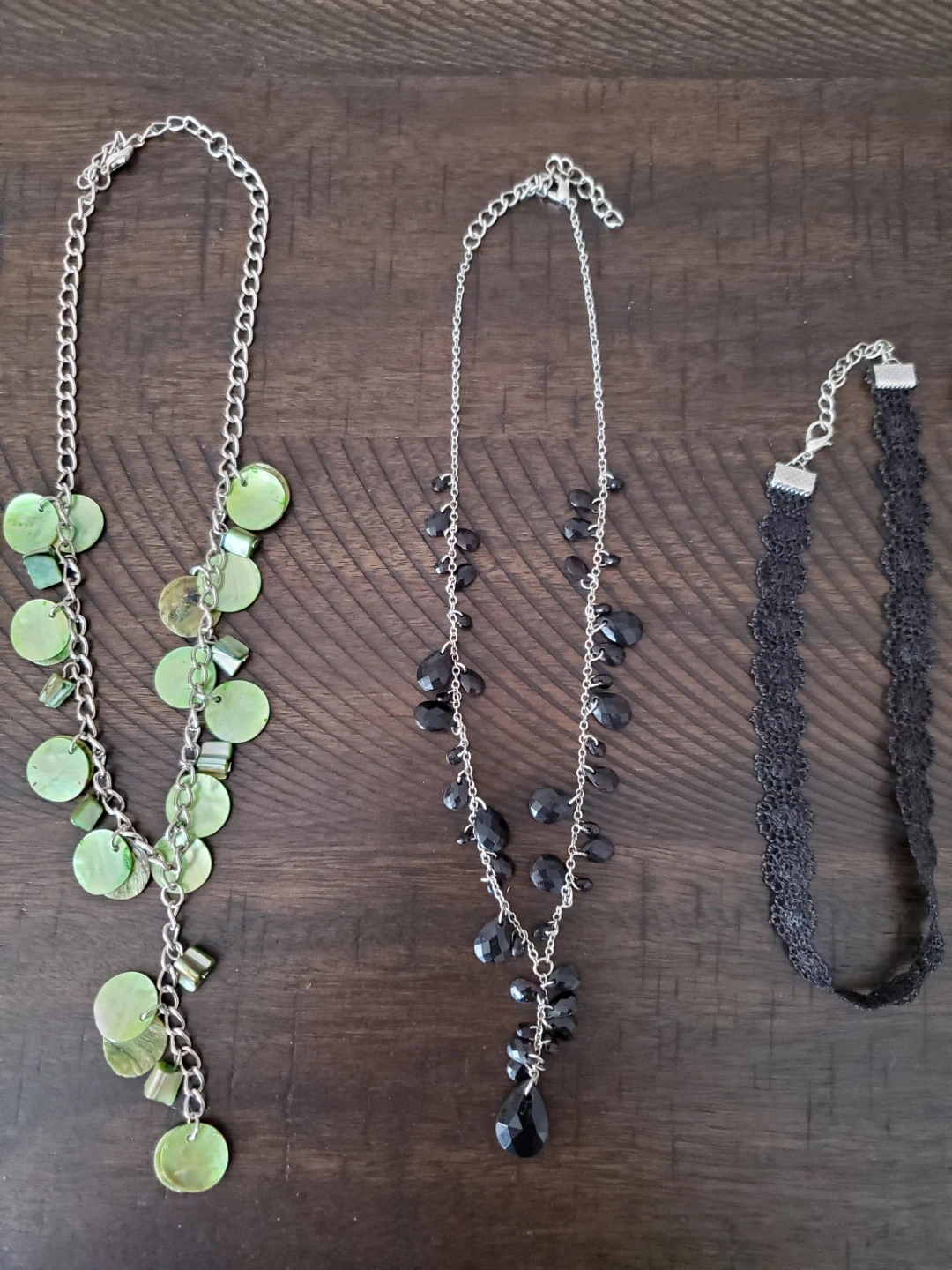 Varied collection of jewelry. Necklaces, bracelets, pendants and earrings. Some are vintage. Lots of different styles and colors. Fun mix.