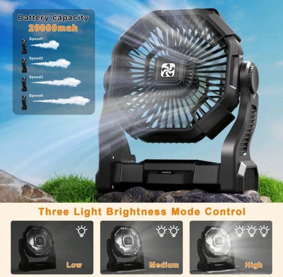 Rechargeable Camping Fan 20000mAh Portable Fan with Light