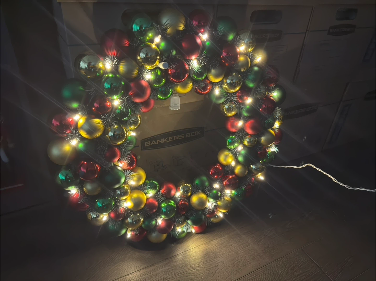 Christmas Wreath with Ornaments and Lights