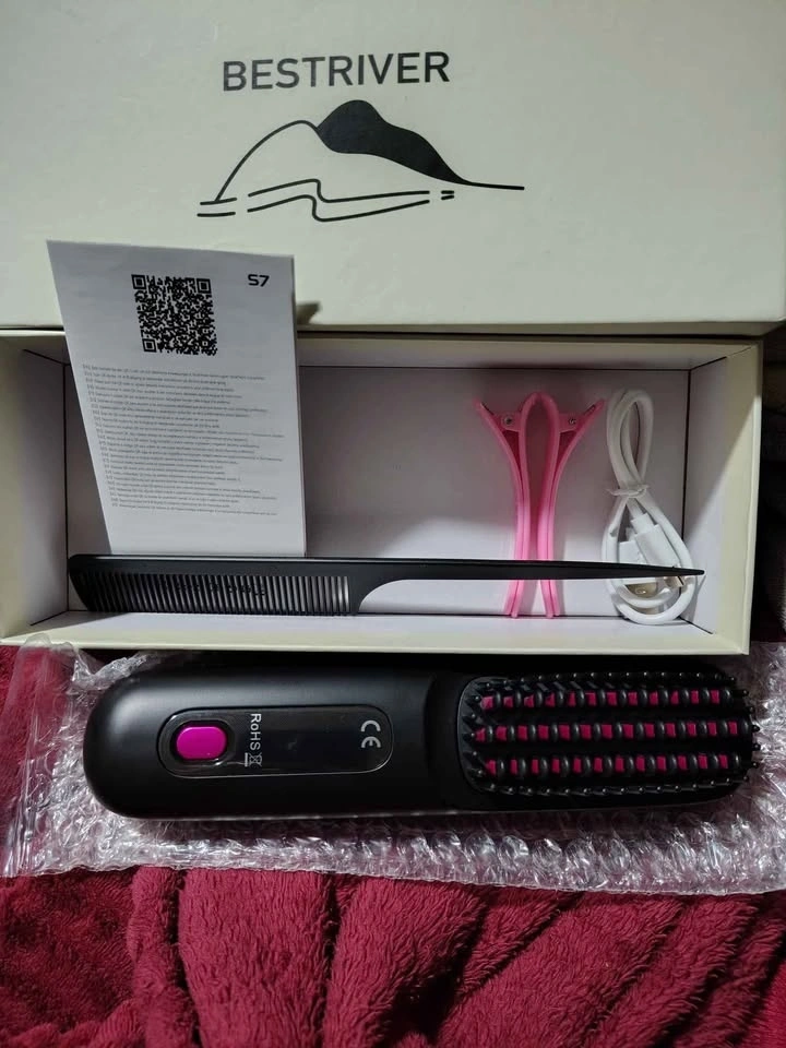 New 2 in 1 Cordless Hair Straightener Brush. Portable straightener brush with LED screen, rechargeable. Great for all hair types. Black. Sells for $55 at Walmart. Located in Crowsnest Pass.