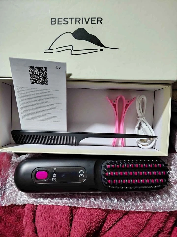 New 2 in 1 Cordless Hair Straightener Brush. Portable straightener brush with LED screen, rechargeable. Great for all hair types. Black. Sells for $55 at Walmart. Located in Crowsnest Pass.