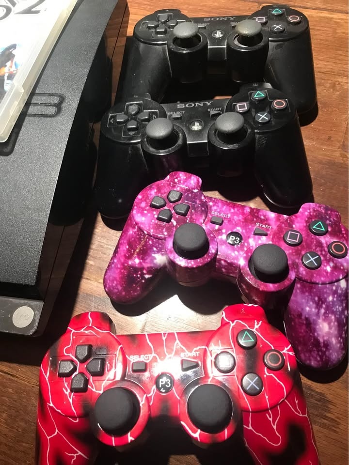 Ps3 with custom firmware, 5 physical games, 4 controllers. Digital games include COD, GTA V, The Last of Us and more. You can install any game yourself.