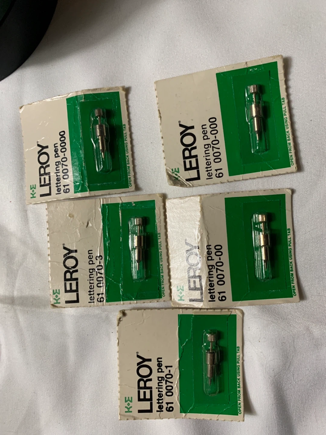 This is a Leroy Reservoir Pen Set, Jewel Point. It comes with multiple lettering pens and ink. This set is ideal for technical drawing and drafting projects.