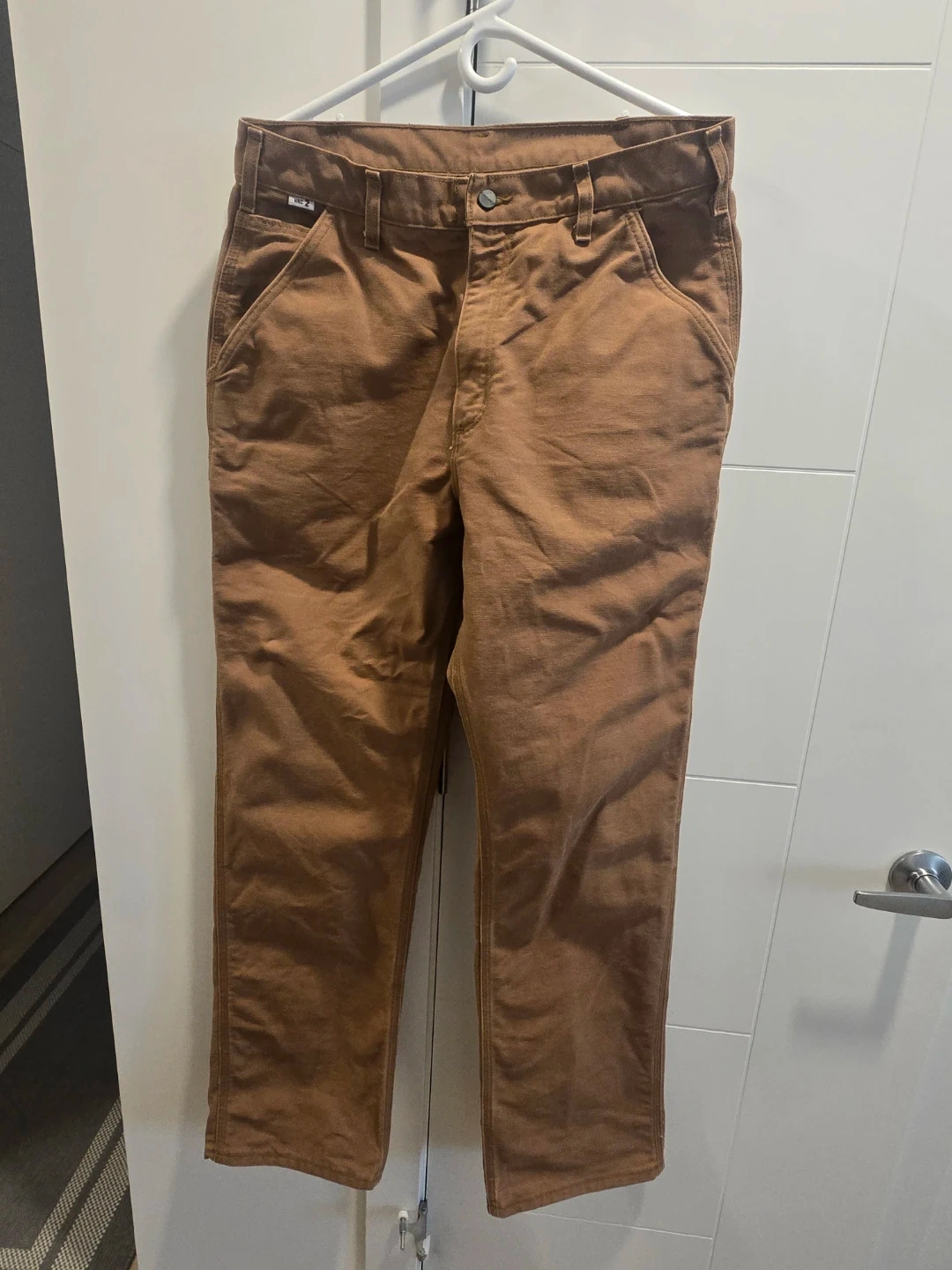 These Carhartt FR work pants are made from 100% cotton. They're size 34x34 and brown in colour. These pants have never been worn. Bought the wrong size for my husband. Too late to return by the time we got home.