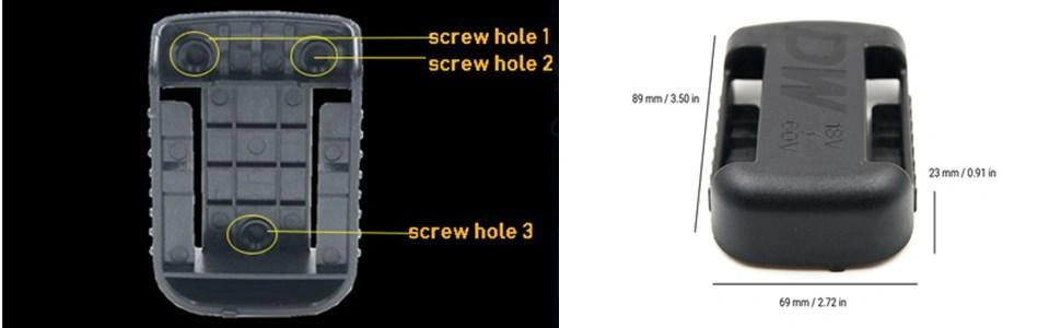 Battery terminal protective covers compatible with DeWalt 18V and 60V batteries. Great for keeping contacts clean, safe, and protected during storage or transport.