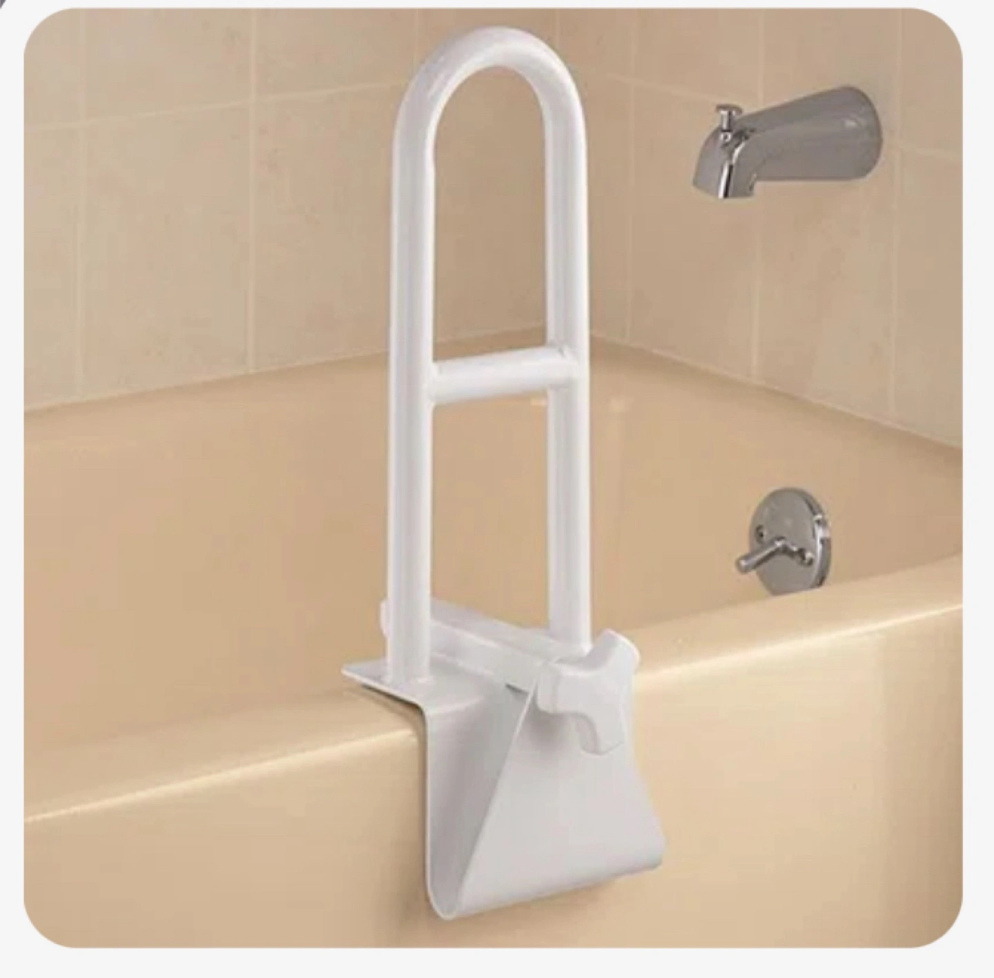 Selling a handy adjustable bathtub safety rail/grab bar! It's in great condition and provides extra support getting in and out of the tub. Perfect for anyone needing a bit of extra stability in the bathroom.