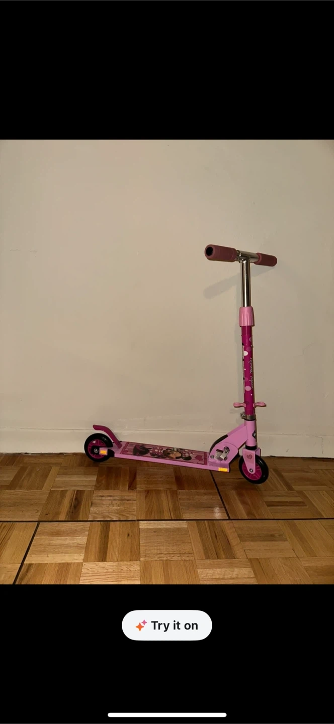 Selling a Huffy Disney Minnie Mouse girls' inline scooter in pink. It's in great shape and ready for some fun adventures!#cleanout