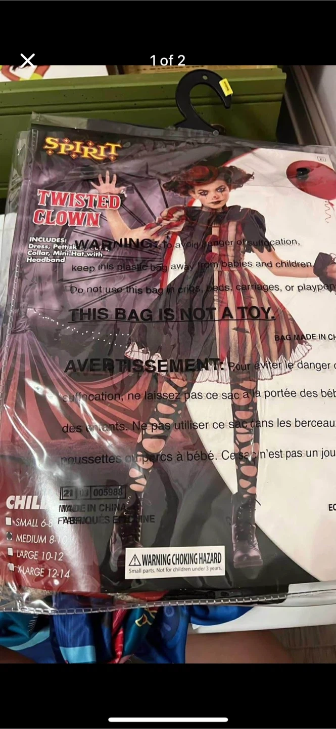 Day 6🥕 Spirit Halloween Twisted Clown Child Costume - Large